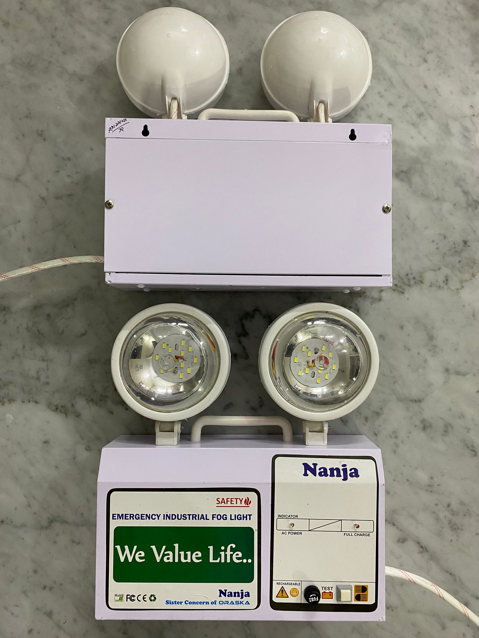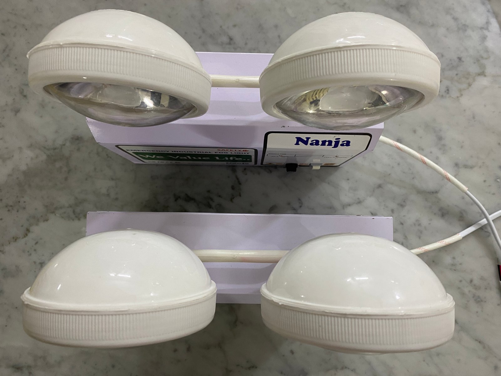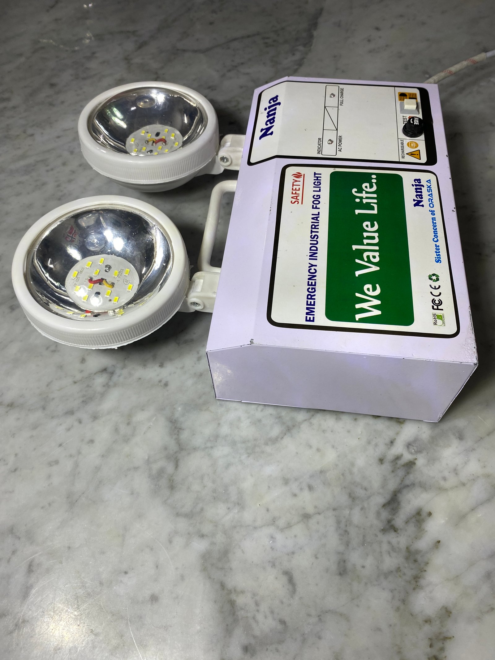 An emergency twin head light is a self-contained lighting device designed to provide illumination during a power failure or emergency. It consists of two adjustable LED or halogen lamp heads, a rechargeable battery, a charging circuit, and an automatic controller.