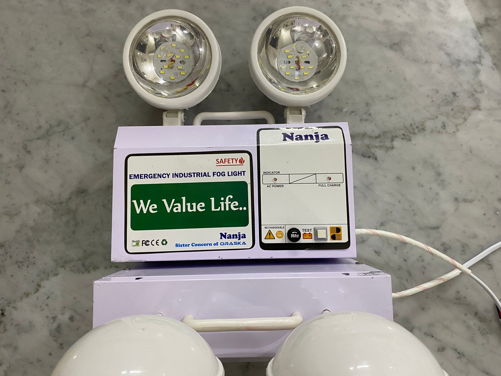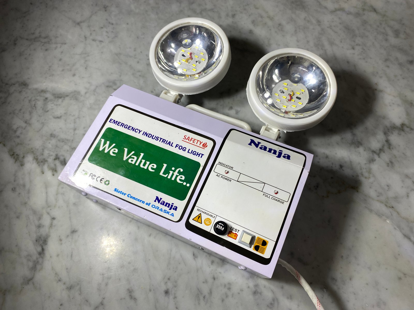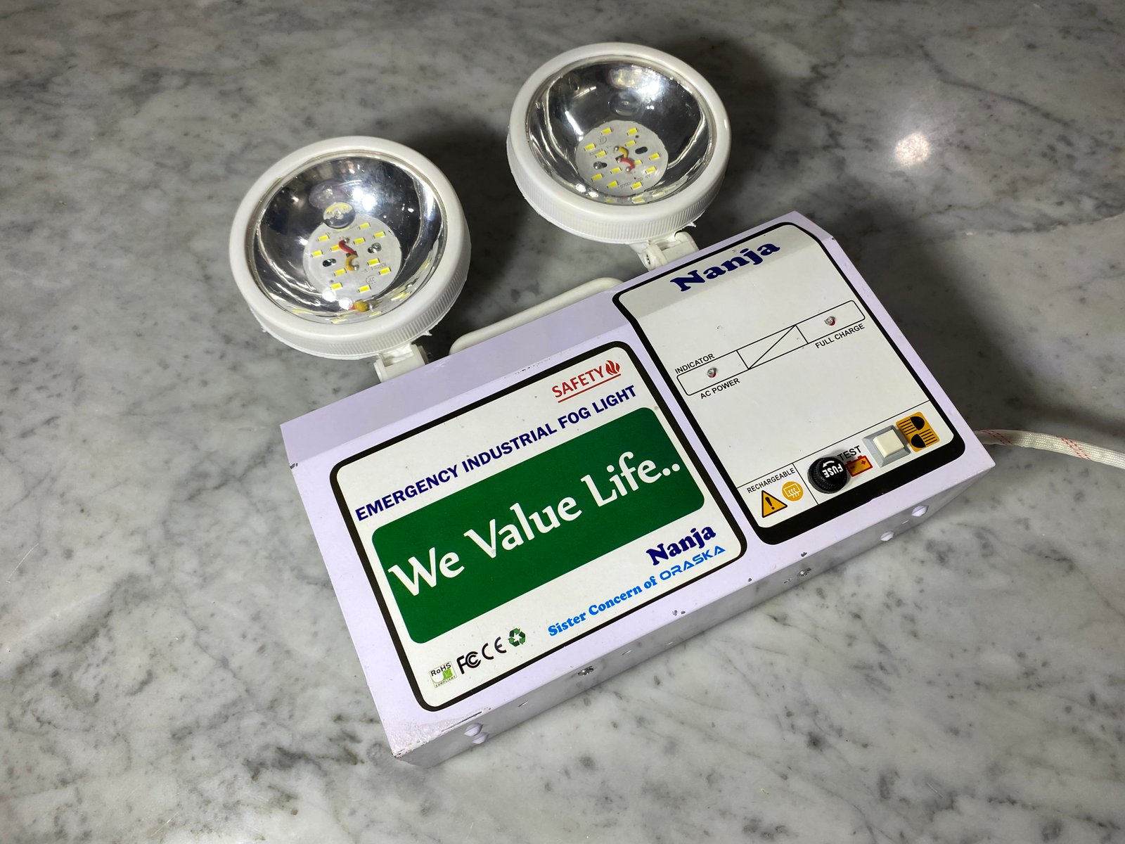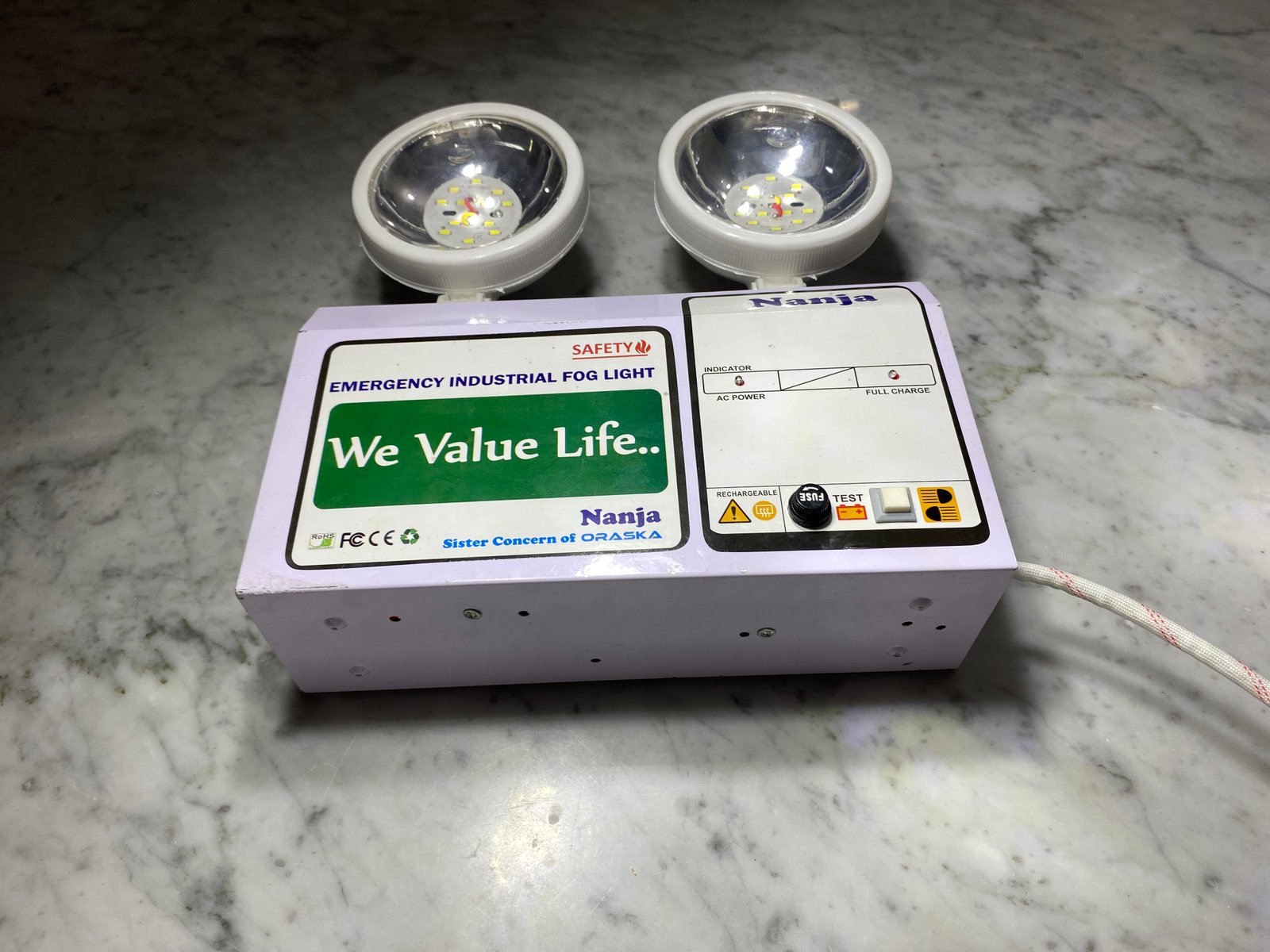 An emergency twin head light is a self-contained lighting device designed to provide illumination during a power failure or emergency. It consists of two adjustable LED or halogen lamp heads, a rechargeable battery, a charging circuit, and an automatic controller.
