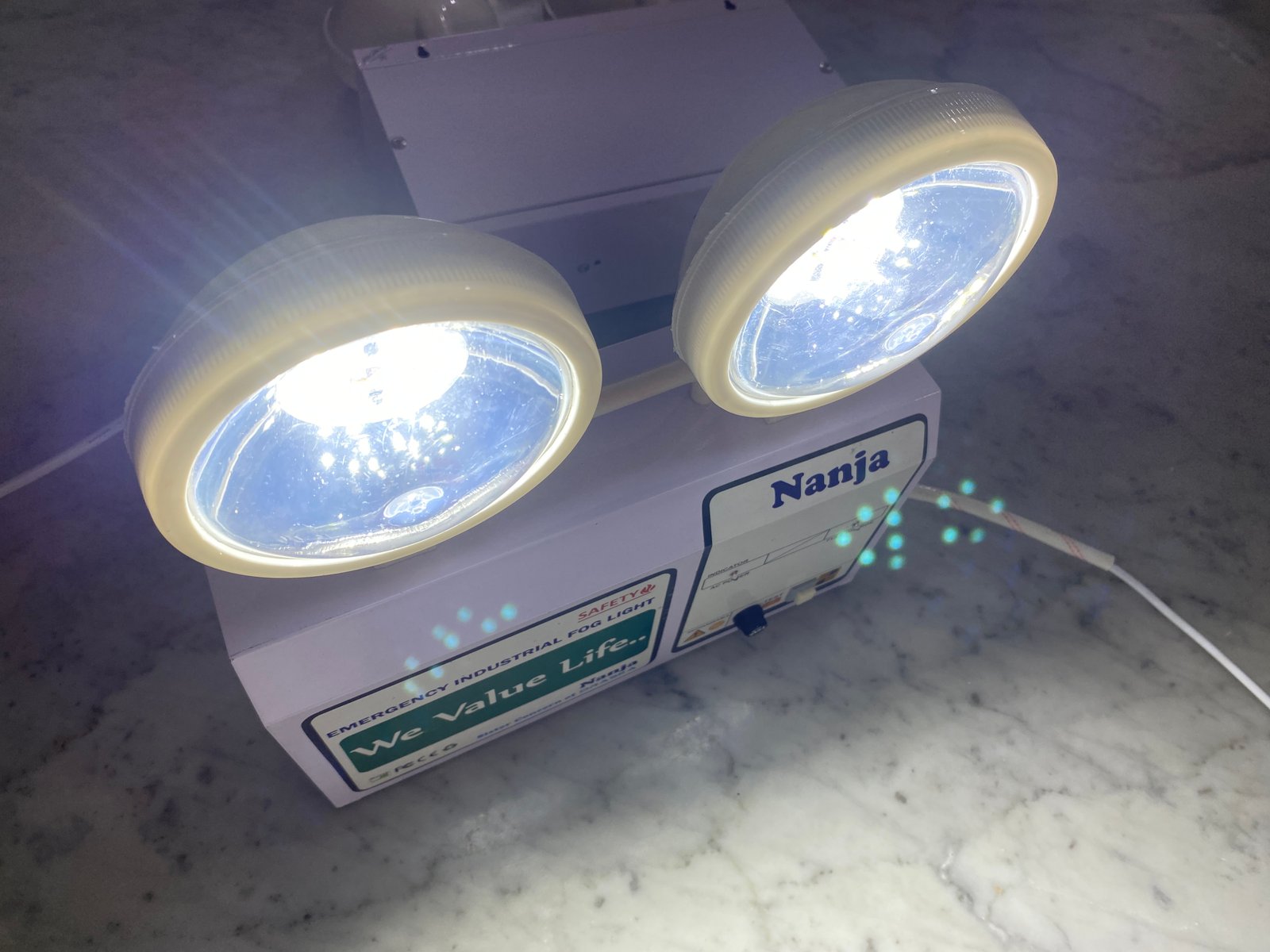 The twin LED or halogen heads turn ON automatically to provide emergency illumination.