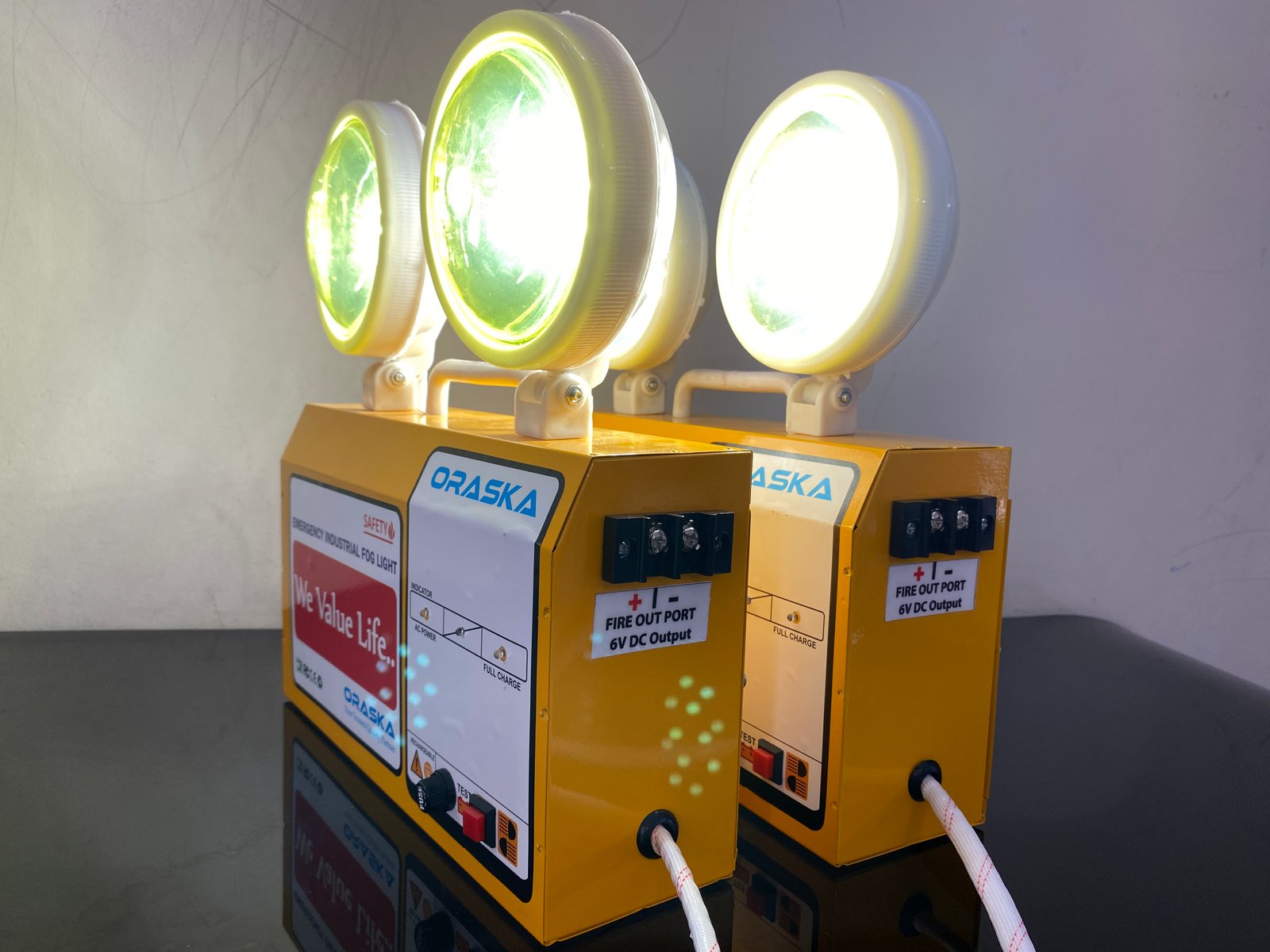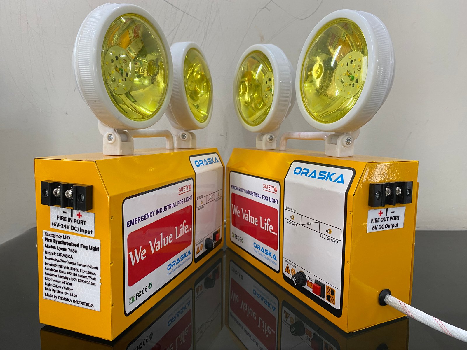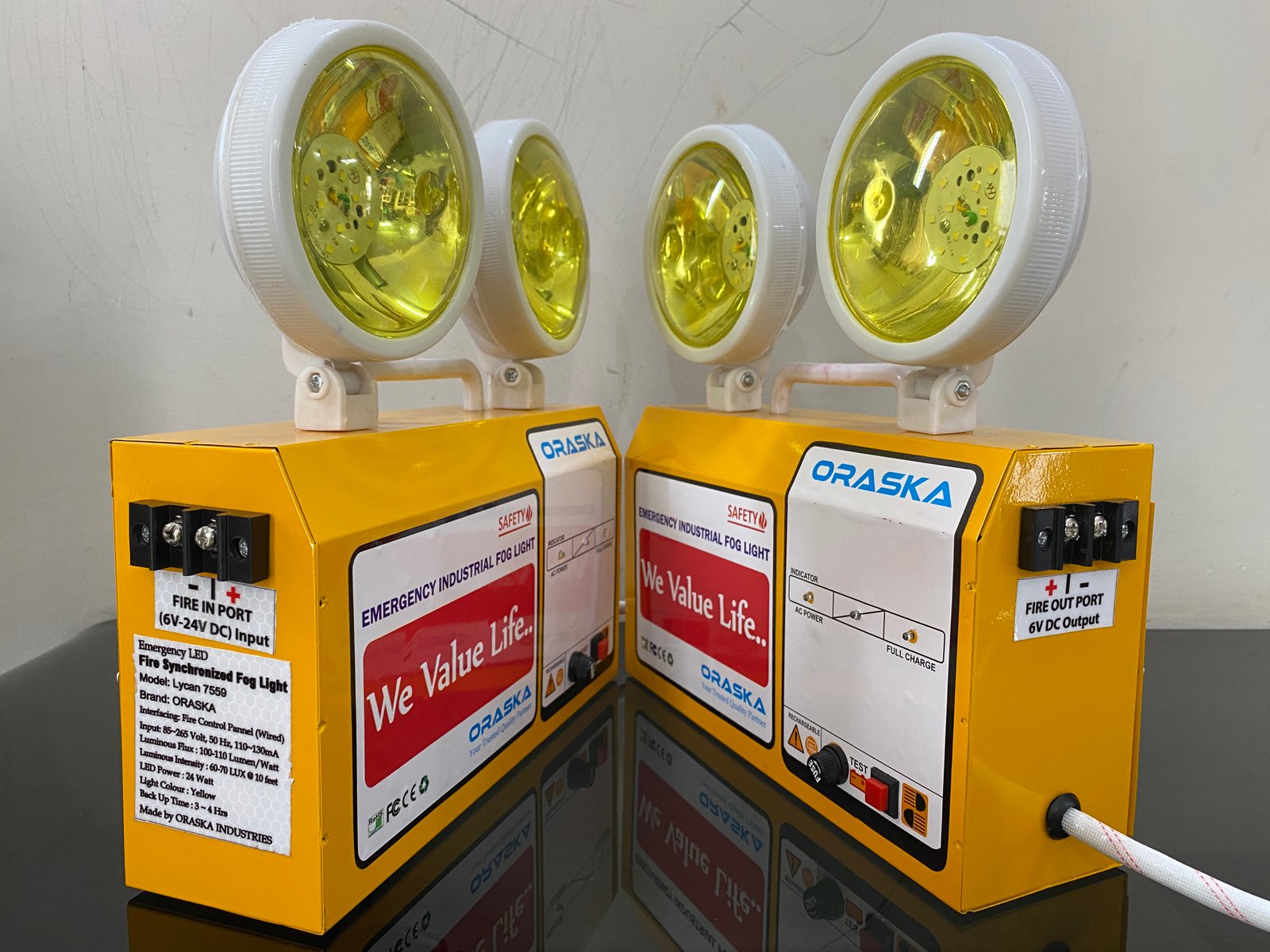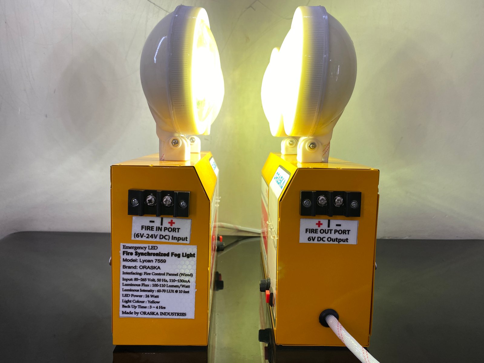 The ORASKA Lycan7559 is a next-generation Fire-Synchronized Emergency Fog Light, specifically designed to ensure uninterrupted visibility during critical fire or power failure scenarios.