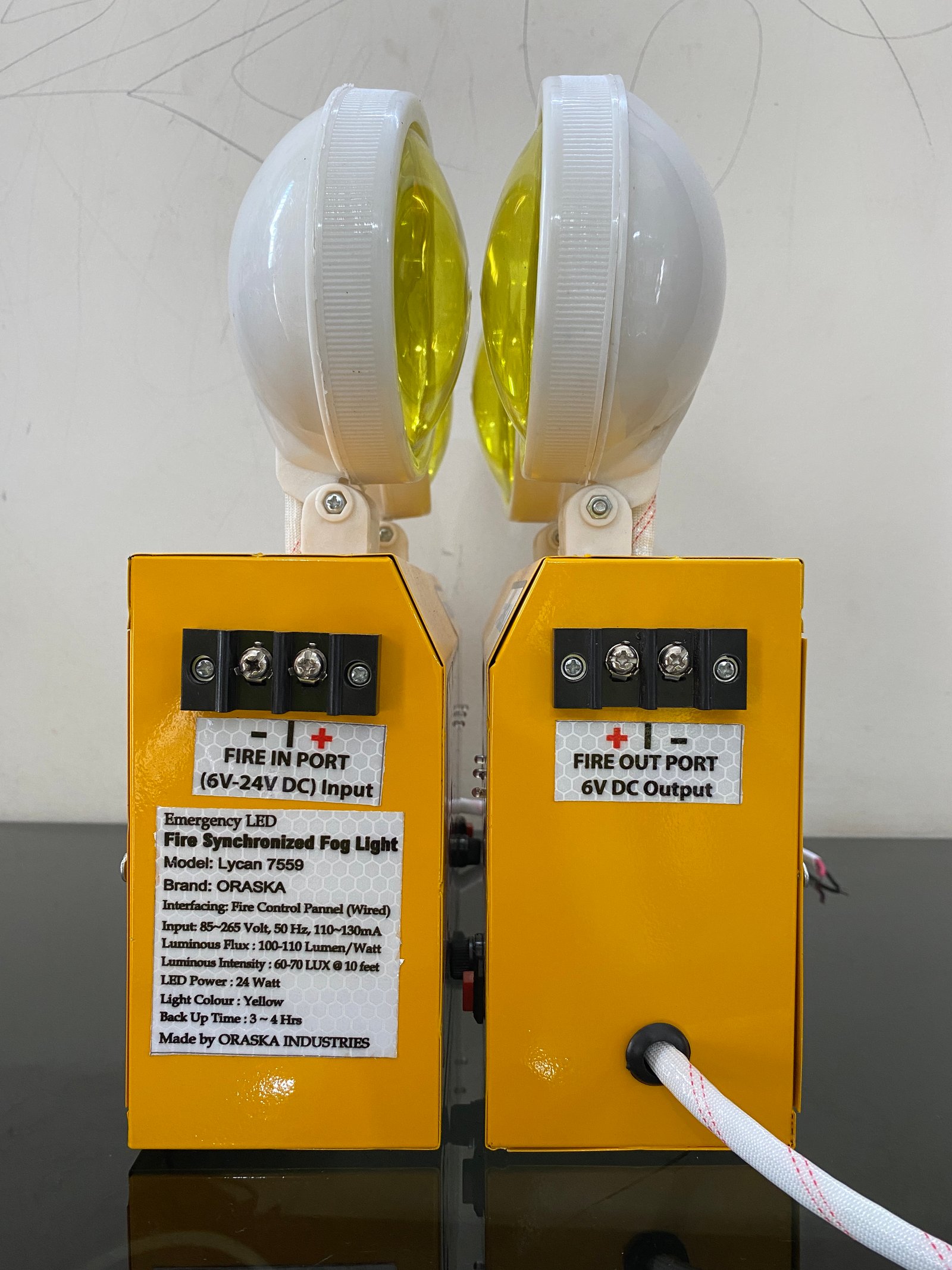 Fire Panel Connected Emergency Fog Light ORASKA Lycan7559 with Fire In & Out Port Made in Bangladesh worlds best