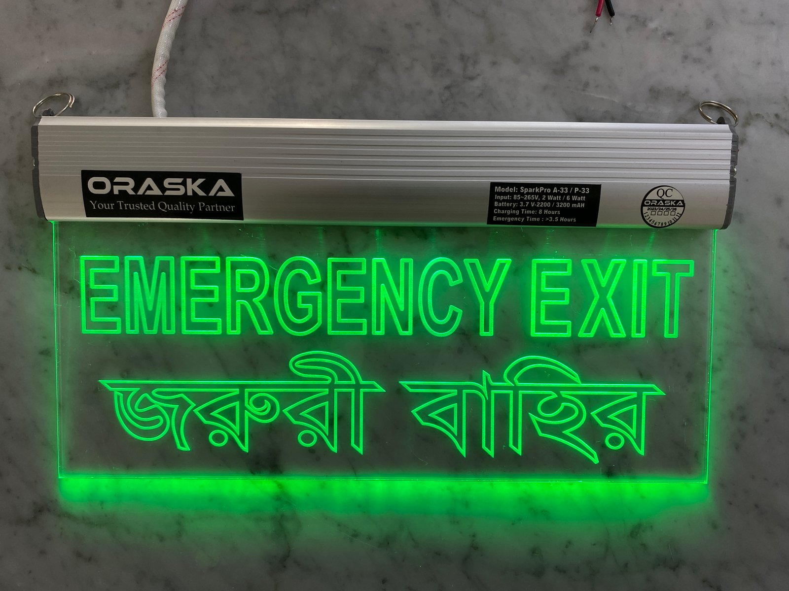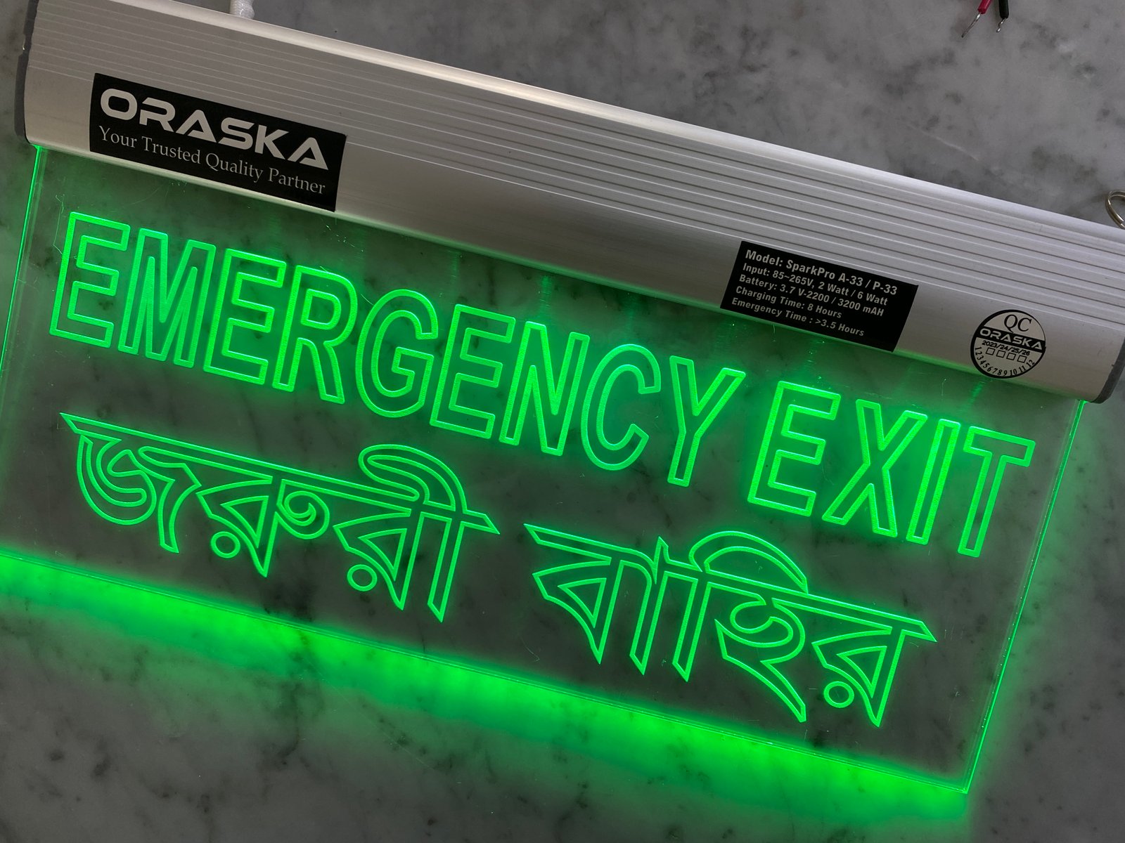 🔋 ORASKA SparkPro A-33 Clear Exit Sign Light