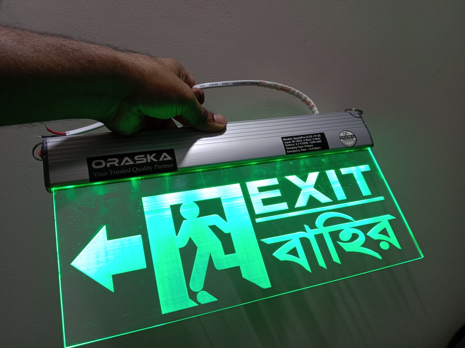 The ORASKA SparkPro A-33 Clear Exit Sign Light is a compact, premium-grade emergency signage solution, crafted with precision for modern safety compliance. Its single-sided clear engraved acrylic panel with aluminum channel body ensures sleek design, high durability, and crystal-clear visibility.