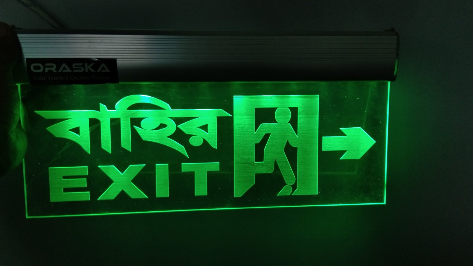 The ORASKA SparkPro A-33 Clear Exit Sign Light is a compact, premium-grade emergency signage solution, crafted with precision for modern safety compliance. Its single-sided clear engraved acrylic panel with aluminum channel body ensures sleek design, high durability, and crystal-clear visibility.