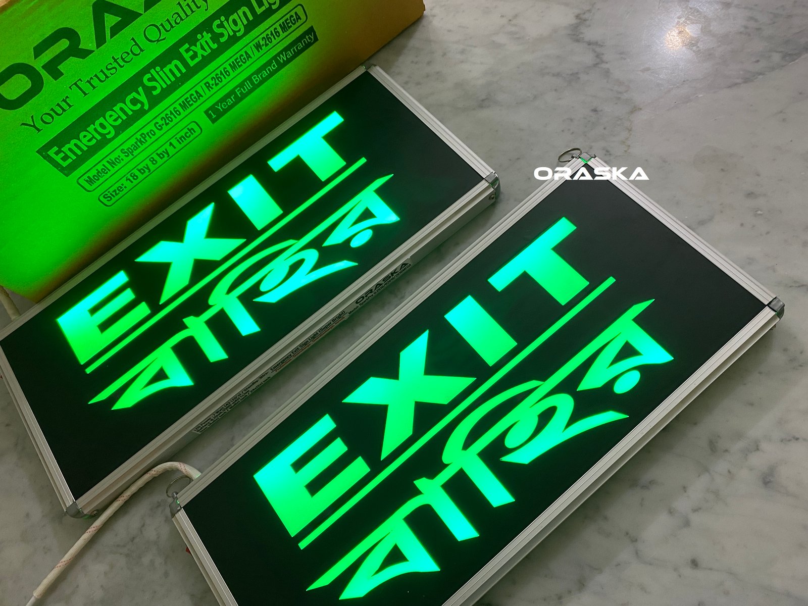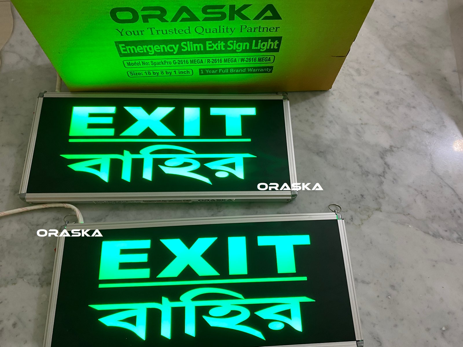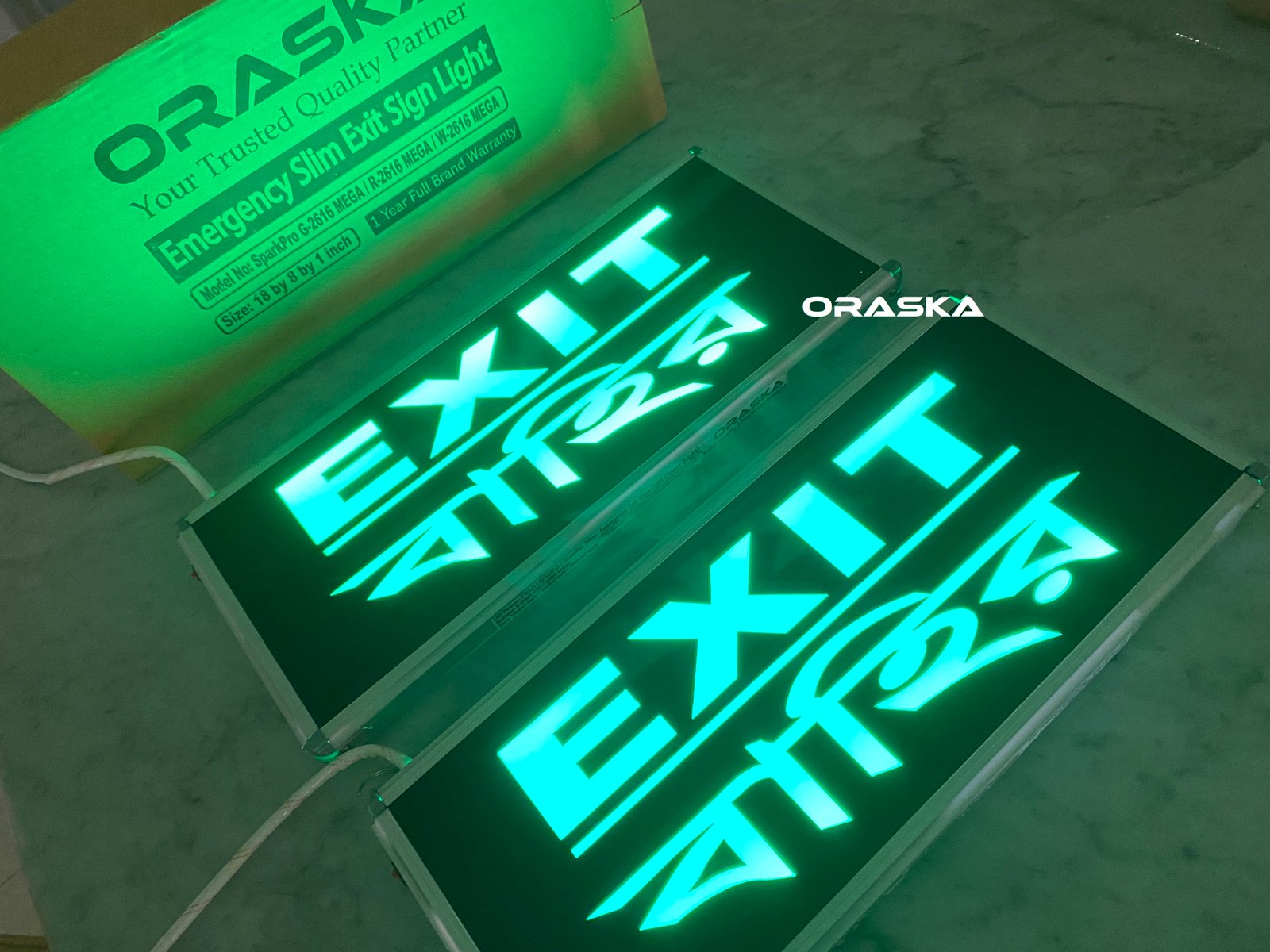 The ORASKA SparkPro G-2616 MEGA is a premium, dual-sided Emergency Exit and বাহির Sign Light, engineered to perform reliably in high-stakes environments. With bright visibility, sleek design, and zero-delay power switchover, this system is built to meet global emergency lighting standards, ensuring safe evacuation and continuous guidance whether power is ON or OFF.