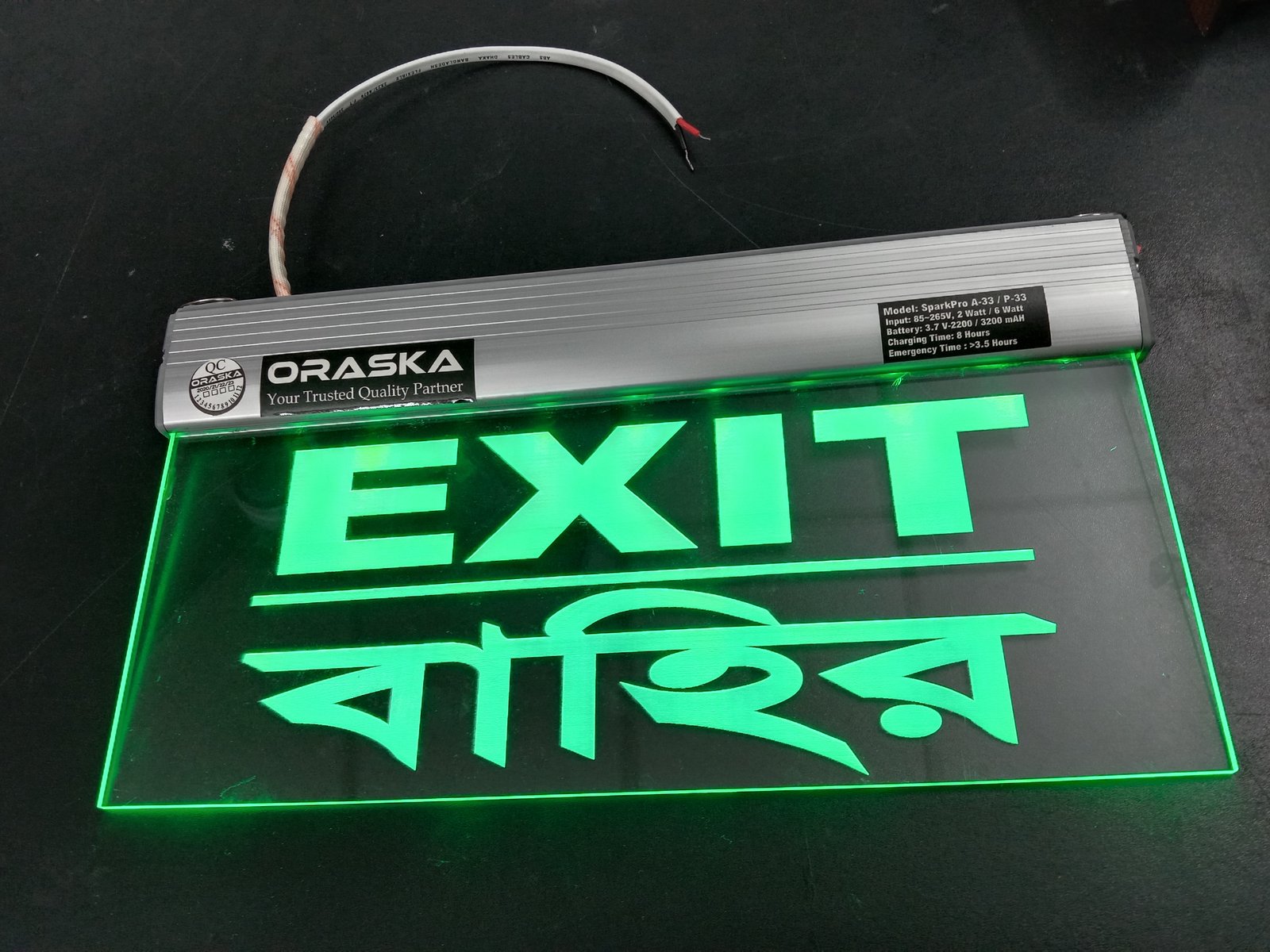 The ORASKA SparkPro A-33 Clear Exit Sign Light is a compact, premium-grade emergency signage solution, crafted with precision for modern safety compliance. Its single-sided clear engraved acrylic panel with aluminum channel body ensures sleek design, high durability, and crystal-clear visibility.