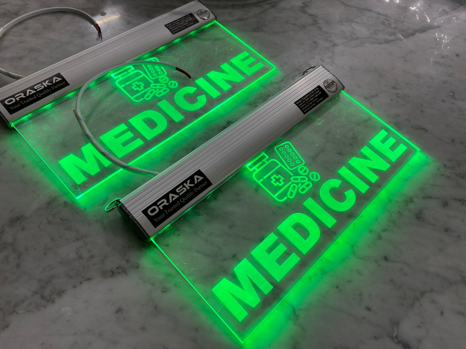 Construction: Aluminium Channel + 5mm Imported Clear Engraved Acrylic