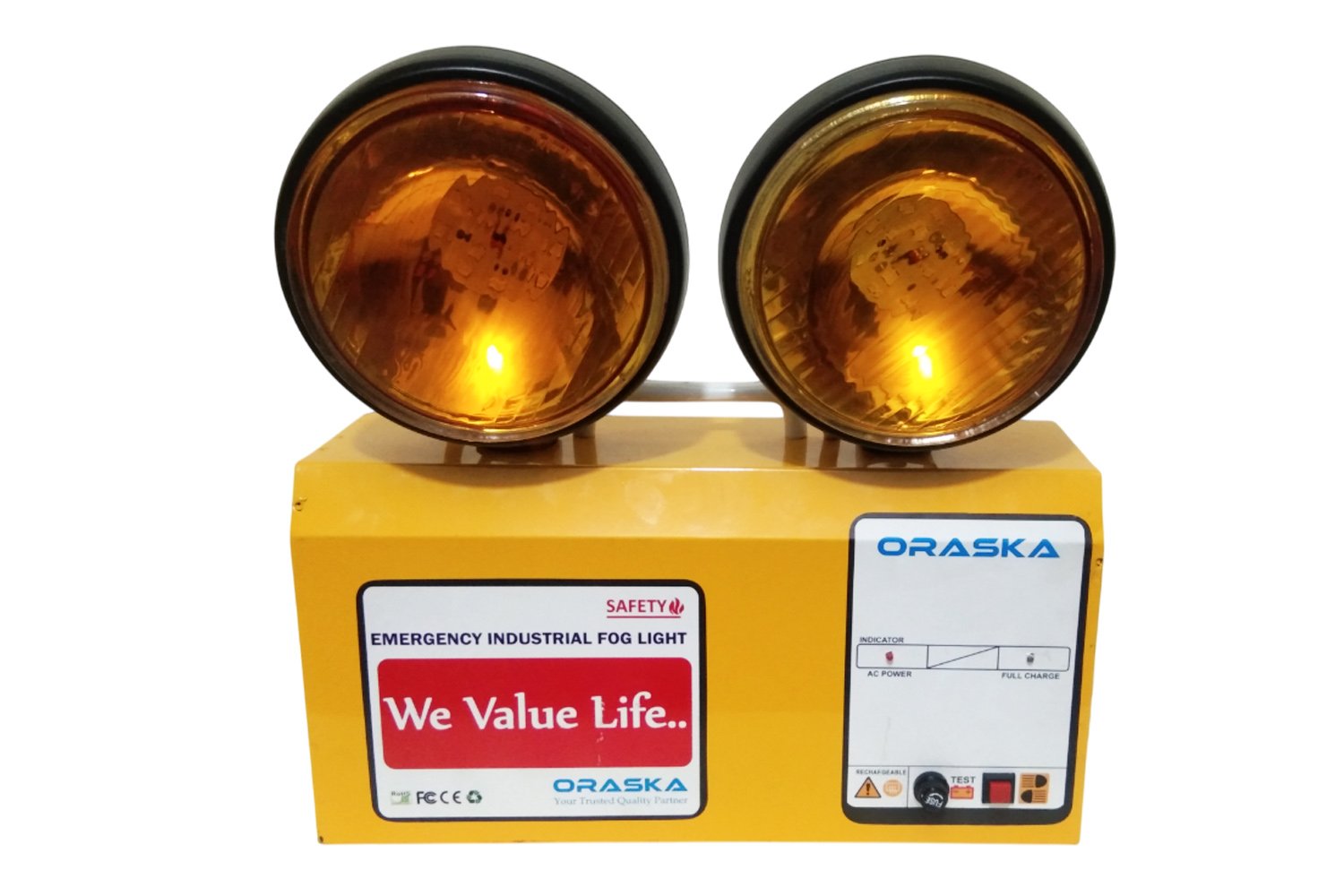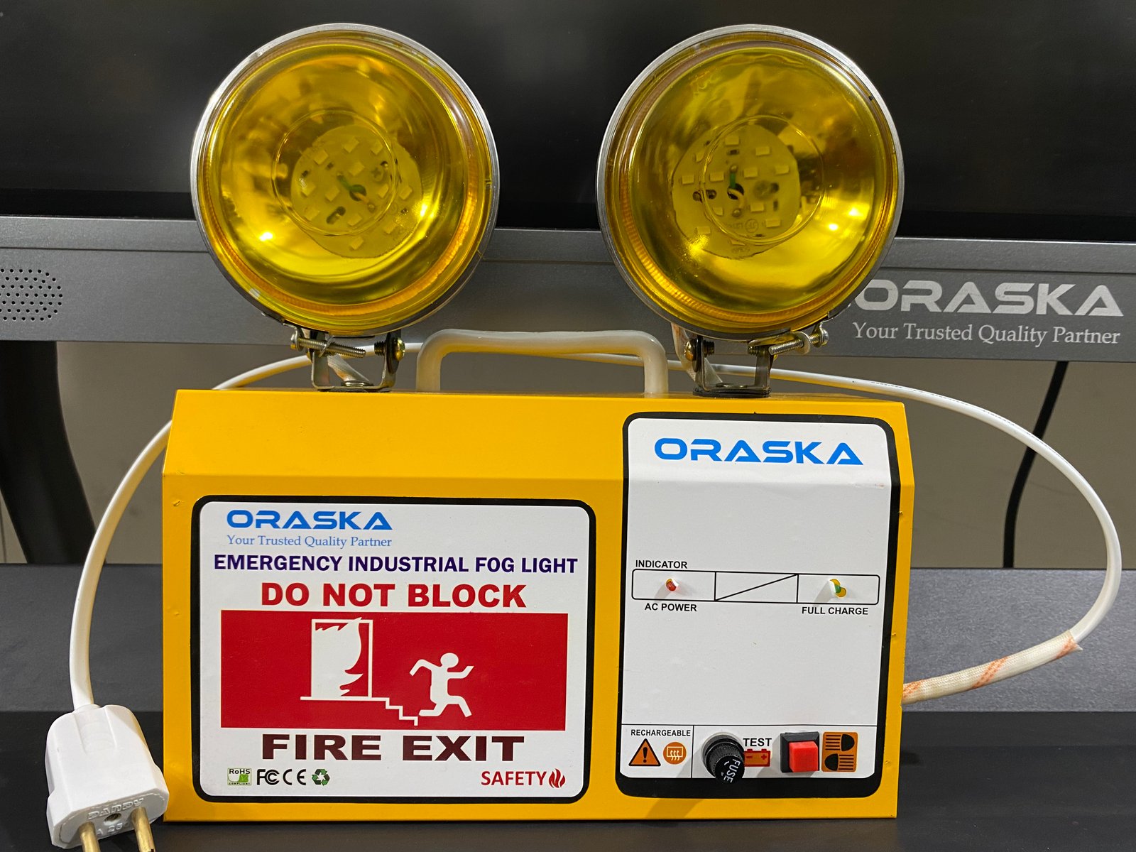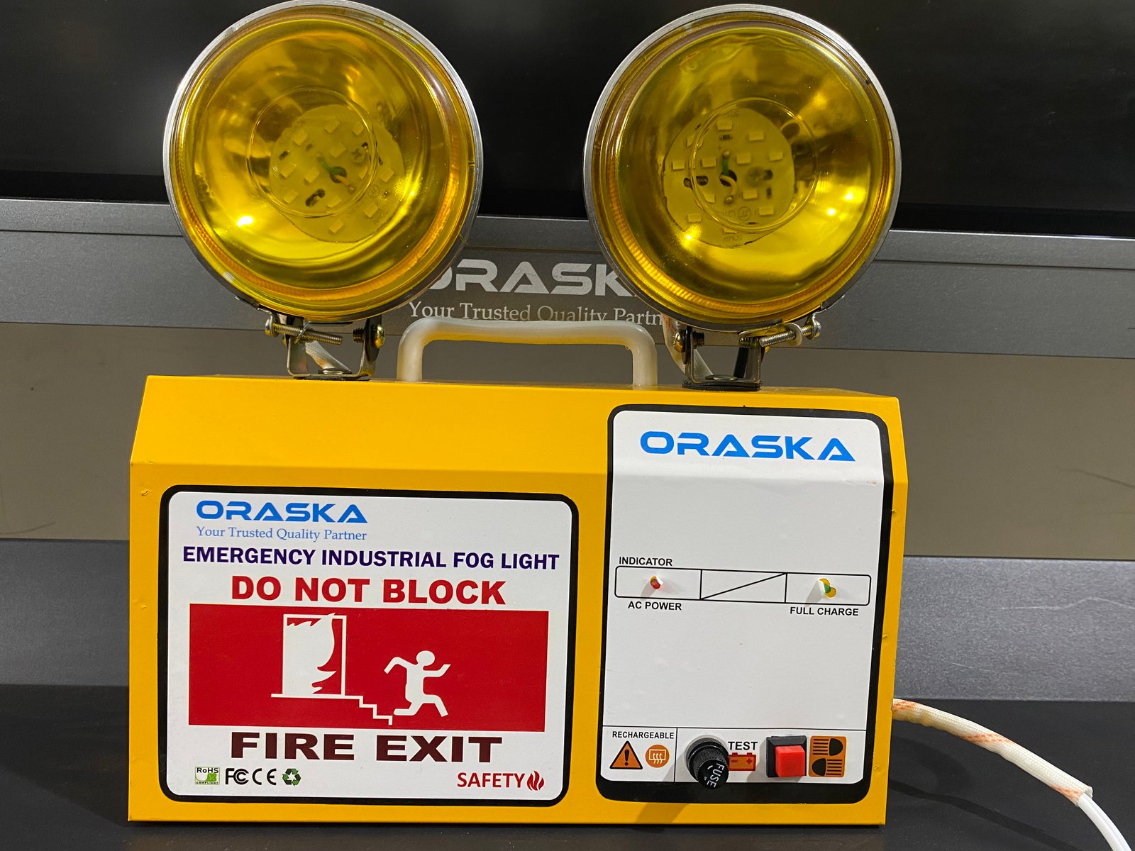 The ORASKA Lycan1207 is a long-focused, high-intensity yellow beam Emergency Fog Light built with cutting-edge microprocessor-based technology for industrial-grade performance. Perfect for challenging environments like fog, smoke, and dust, it delivers unmatched clarity and operational safety when power fails — even if your entire backup system collapses.
