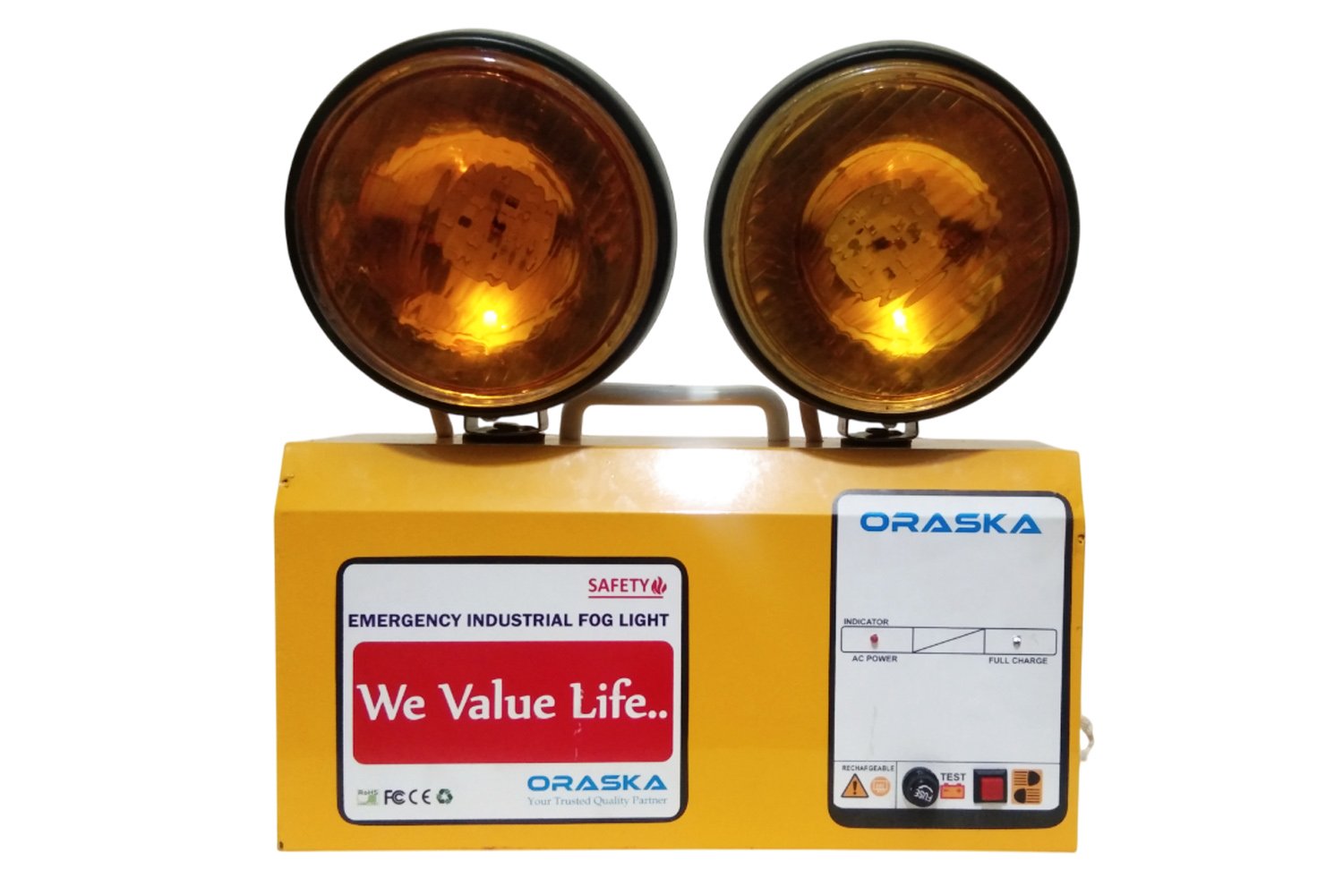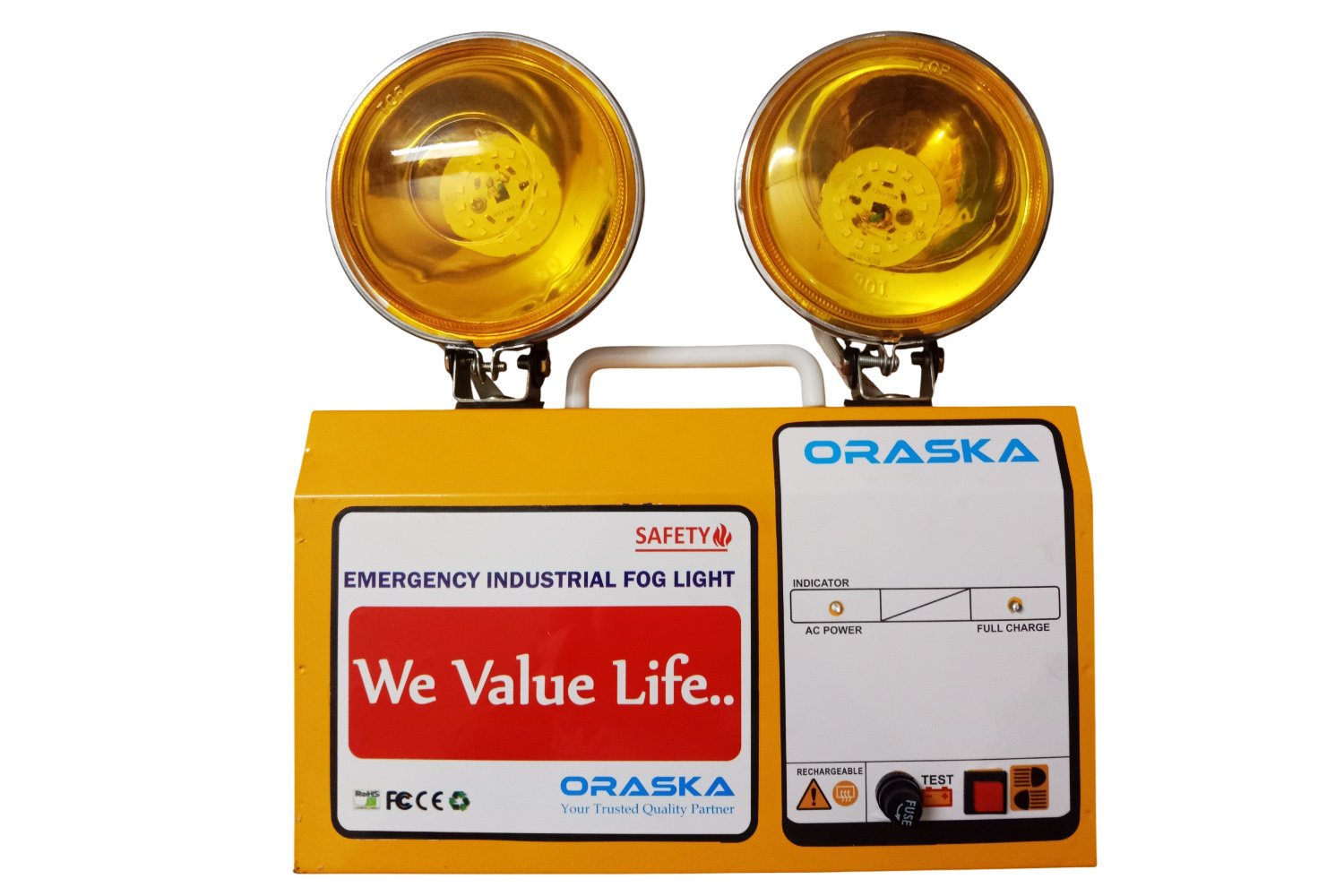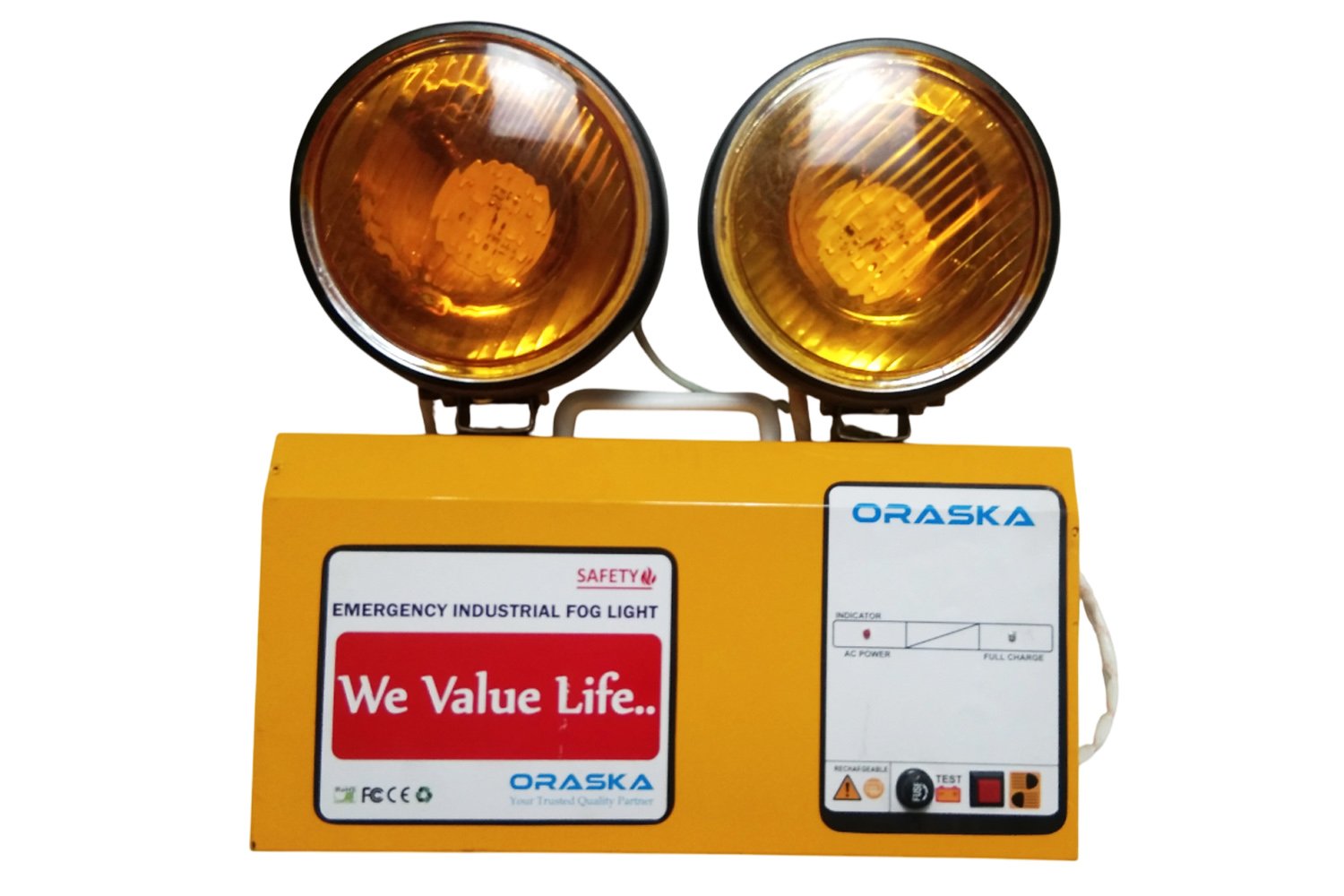 The ORASKA Lycan1207 is a long-focused, high-intensity yellow beam Emergency Fog Light built with cutting-edge microprocessor-based technology for industrial-grade performance. Perfect for challenging environments like fog, smoke, and dust, it delivers unmatched clarity and operational safety when power fails — even if your entire backup system collapses.