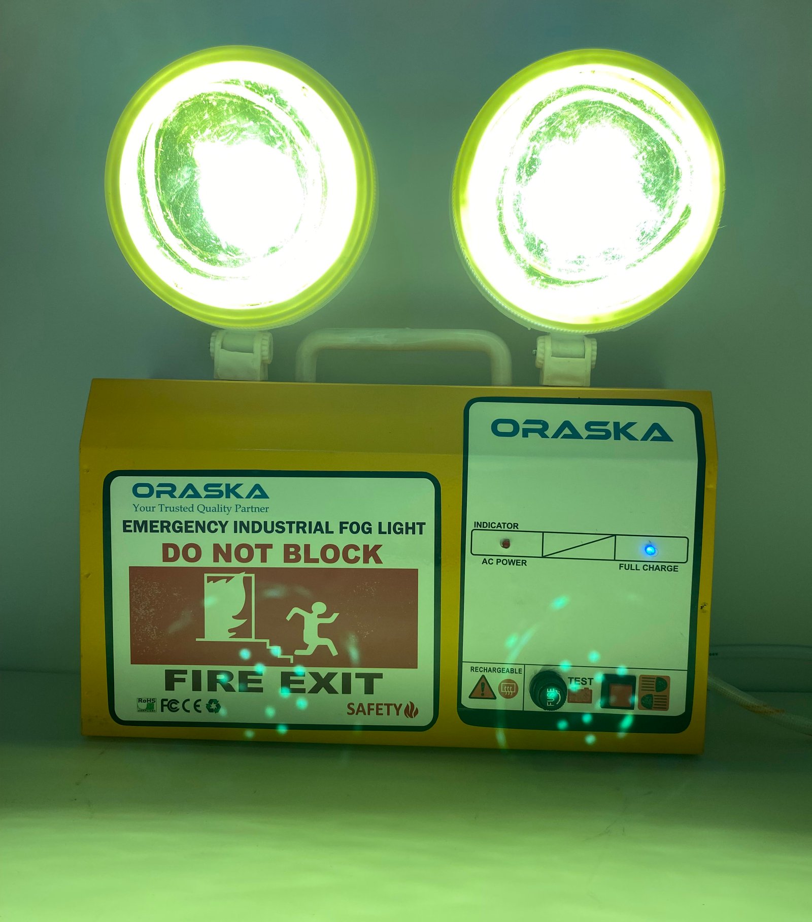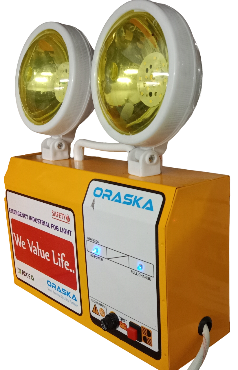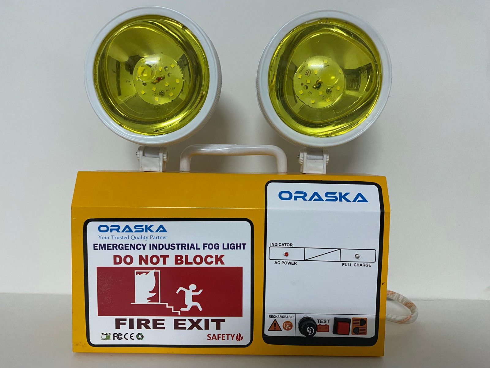 The Oraska NR6V24W is a Twin Head Emergency Fog Light engineered for critical visibility during power failures, fog, smoke, or dusty environments. Designed with dual high-power adjustable yellow LED lamp heads, this unit delivers focused, wide-angle illumination when visibility is compromised. It operates automatically in the event of a power outage, powered by a built-in 6V-4.5AH rechargeable battery, and is built to meet UL, NFPA, and Accord compliance standards.