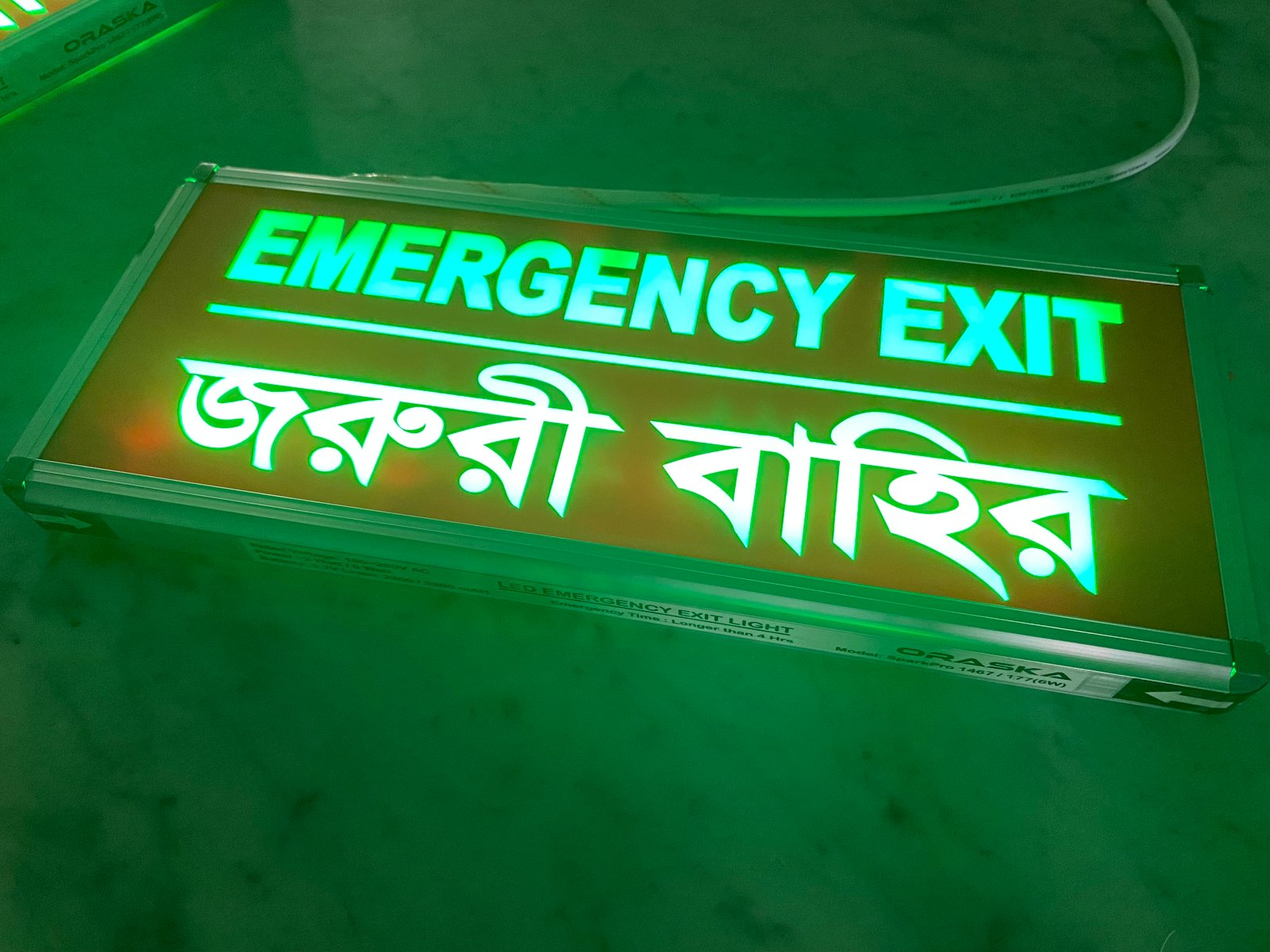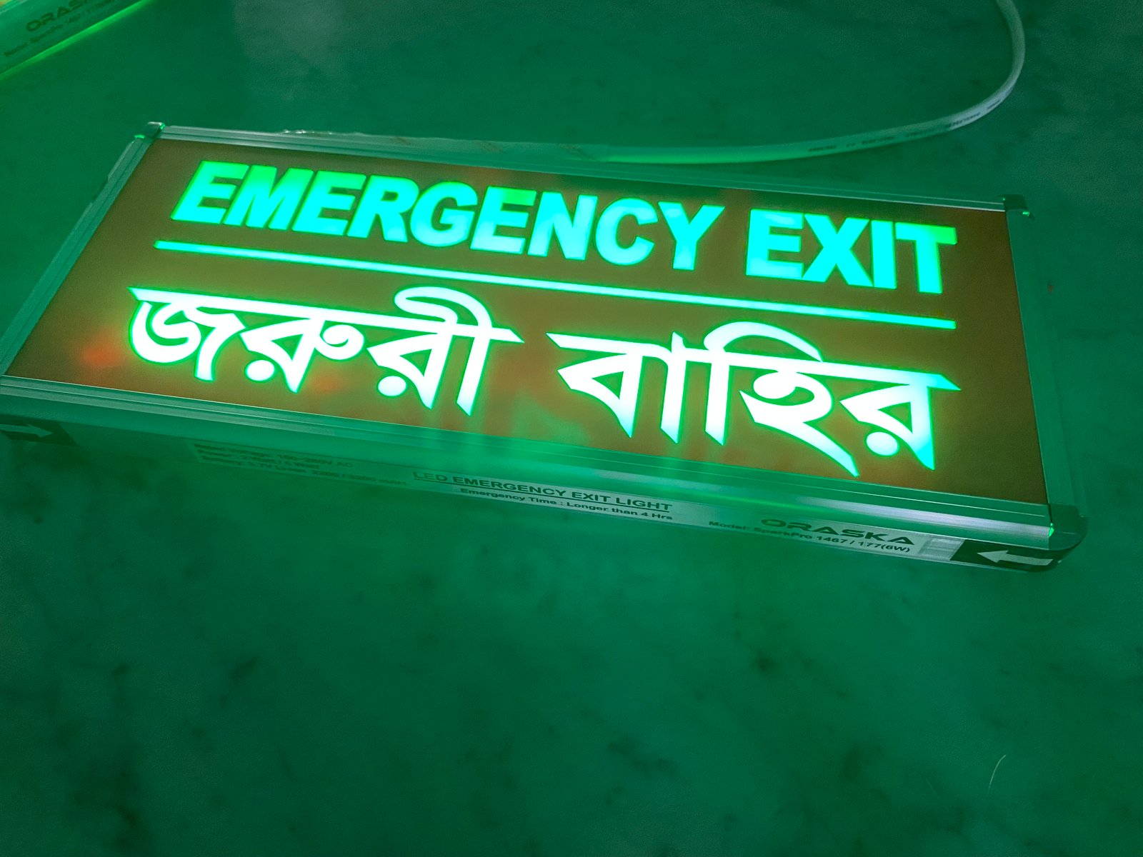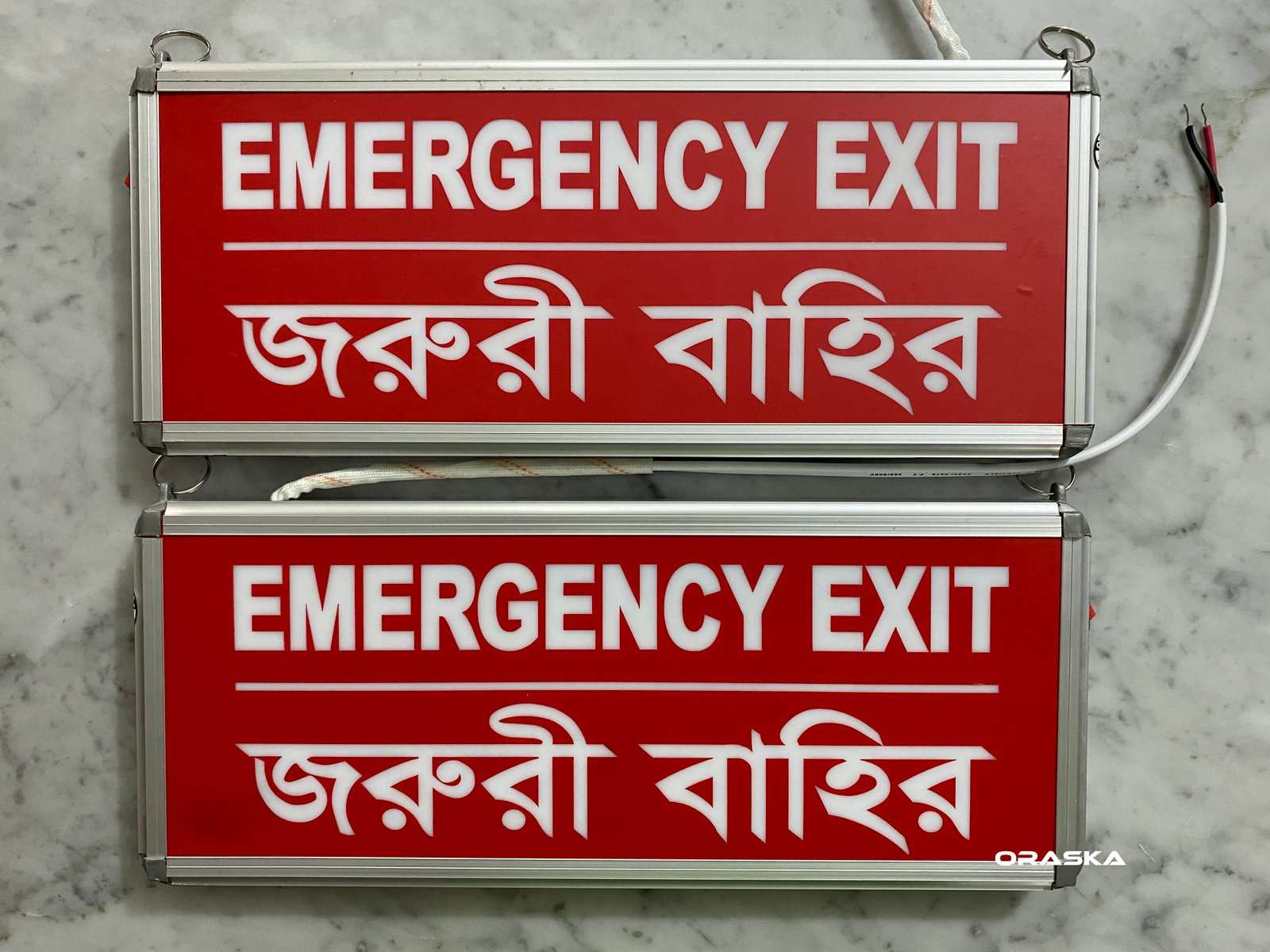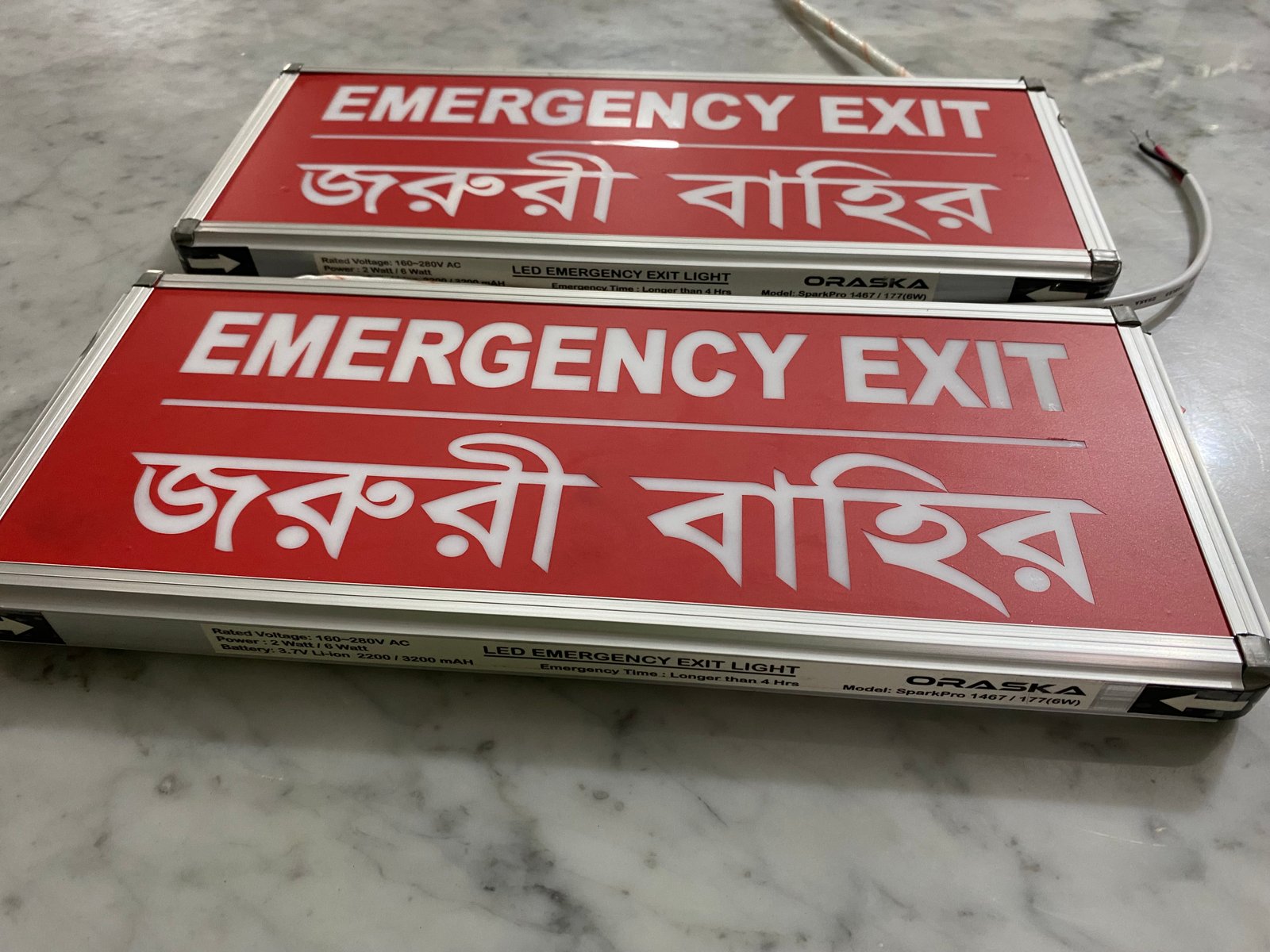 The ORASKA SparkPro G-2616 is a premium, dual-sided Emergency Exit and বাহির Sign Light, engineered to perform reliably in high-stakes environments. With bright visibility, sleek design, and zero-delay power switchover, this system is built to meet global emergency lighting standards, ensuring safe evacuation and continuous guidance whether power is ON or OFF.