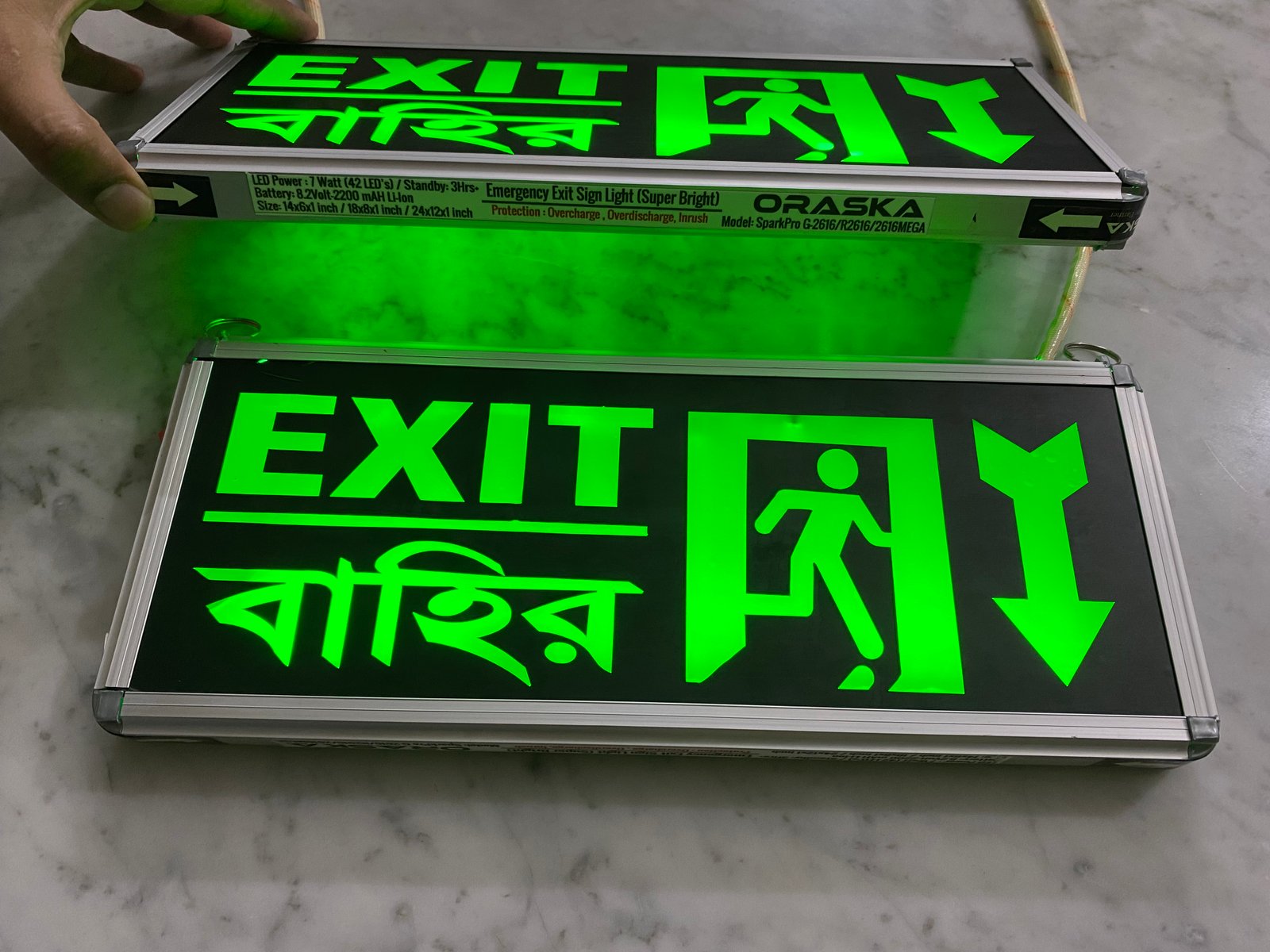 The ORASKA SparkPro G-2616 is a premium, dual-sided Emergency Exit and বাহির Sign Light, engineered to perform reliably in high-stakes environments. With bright visibility, sleek design, and zero-delay power switchover, this system is built to meet global emergency lighting standards, ensuring safe evacuation and continuous guidance whether power is ON or OFF.