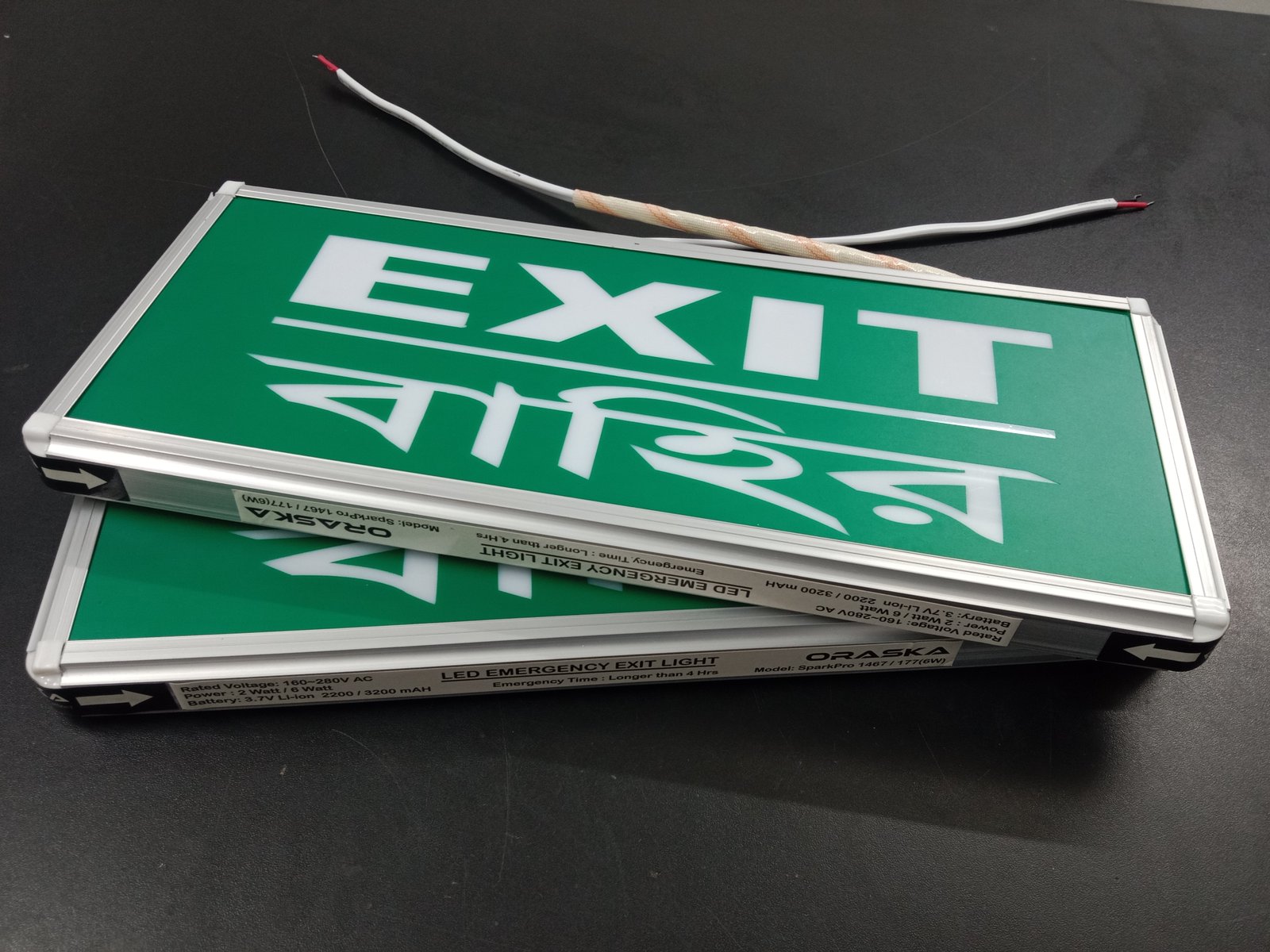 The ORASKA SparkPro W-2616 is a premium, dual-sided Emergency Exit and বাহির Sign Light, engineered to perform reliably in high-stakes environments. With bright visibility, sleek design, and zero-delay power switchover, this system is built to meet global emergency lighting standards, ensuring safe evacuation and continuous guidance whether power is ON or OFF.