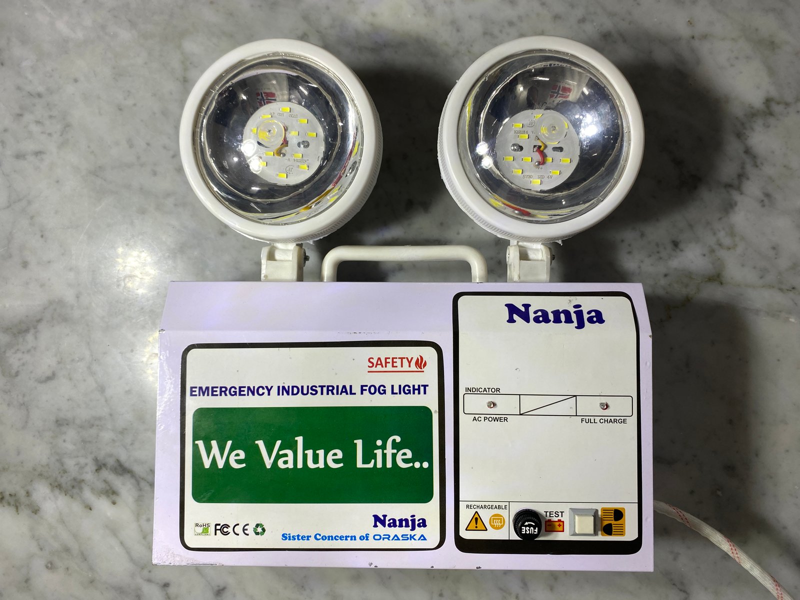 An emergency twin head light is a self-contained lighting device designed to provide illumination during a power failure or emergency. It consists of two adjustable LED or halogen lamp heads, a rechargeable battery, a charging circuit, and an automatic controller.