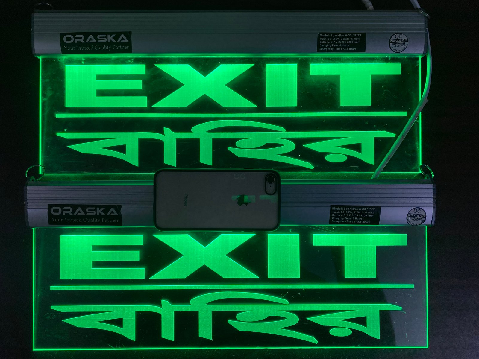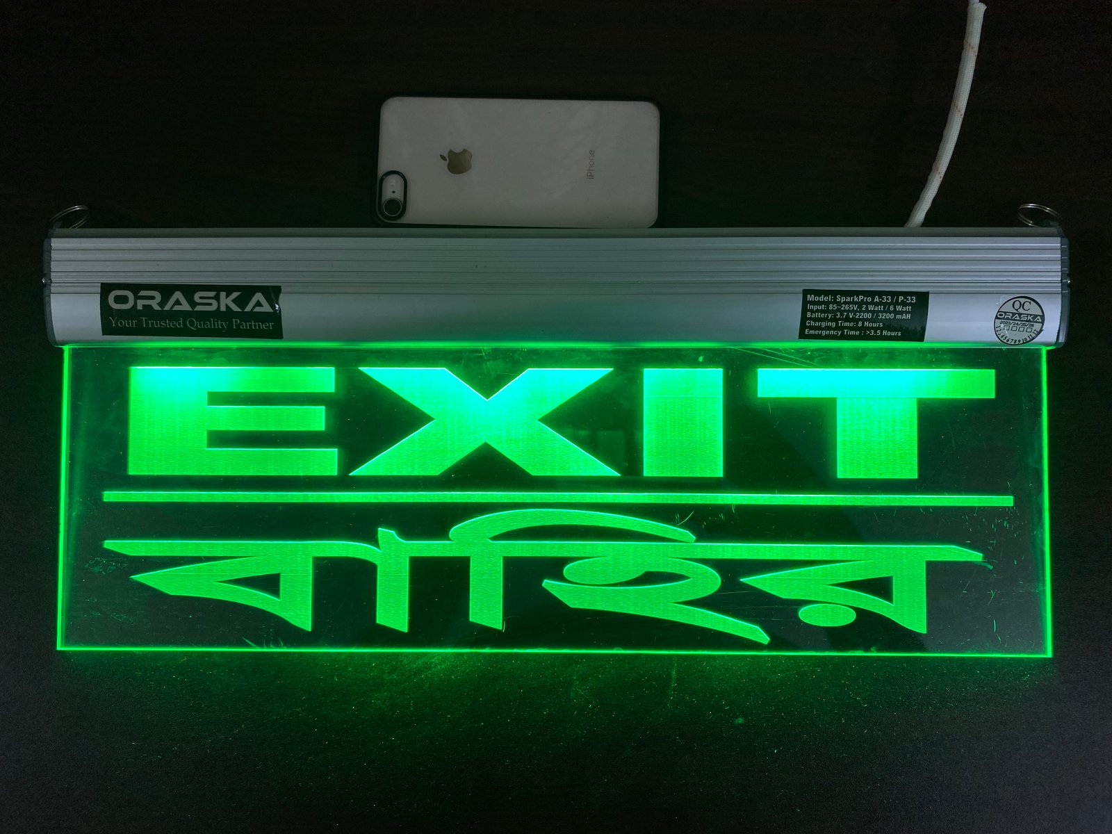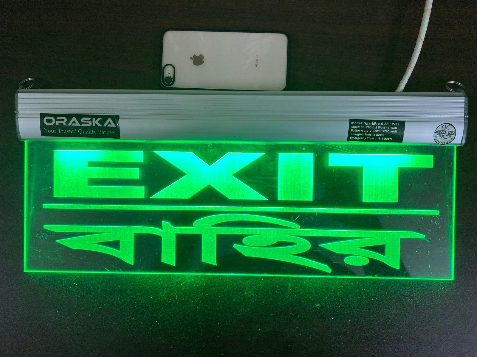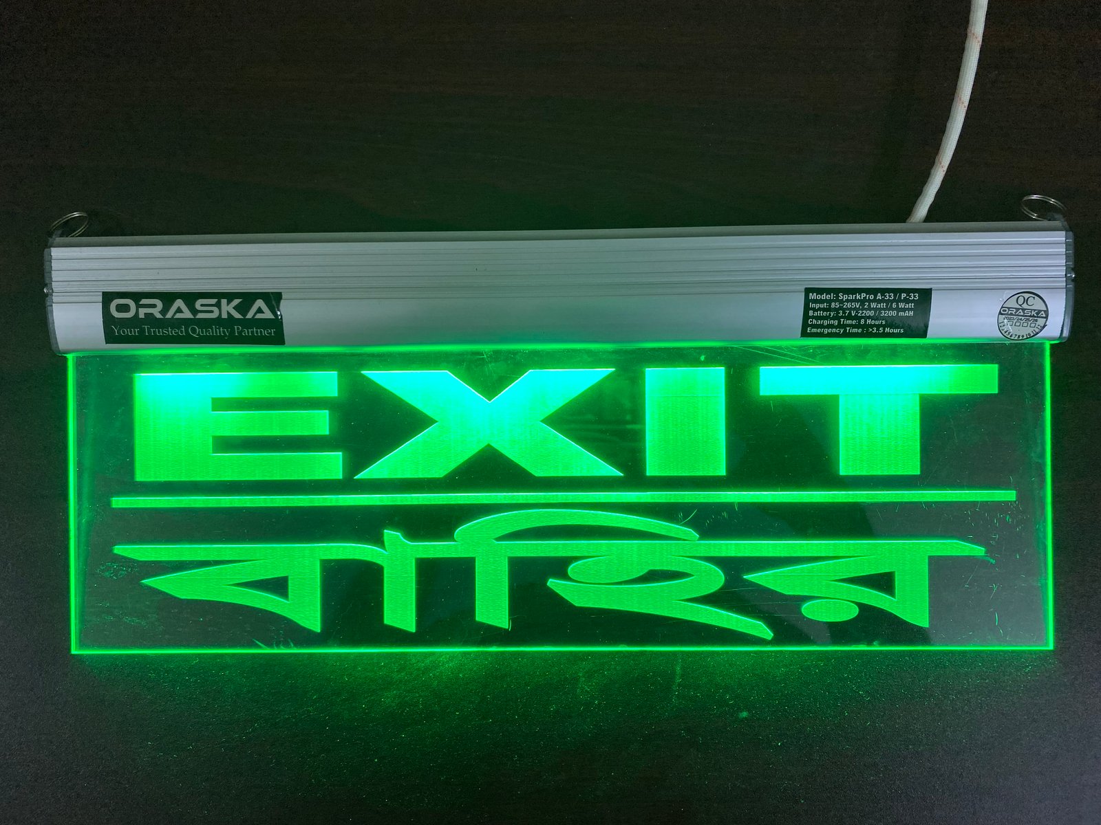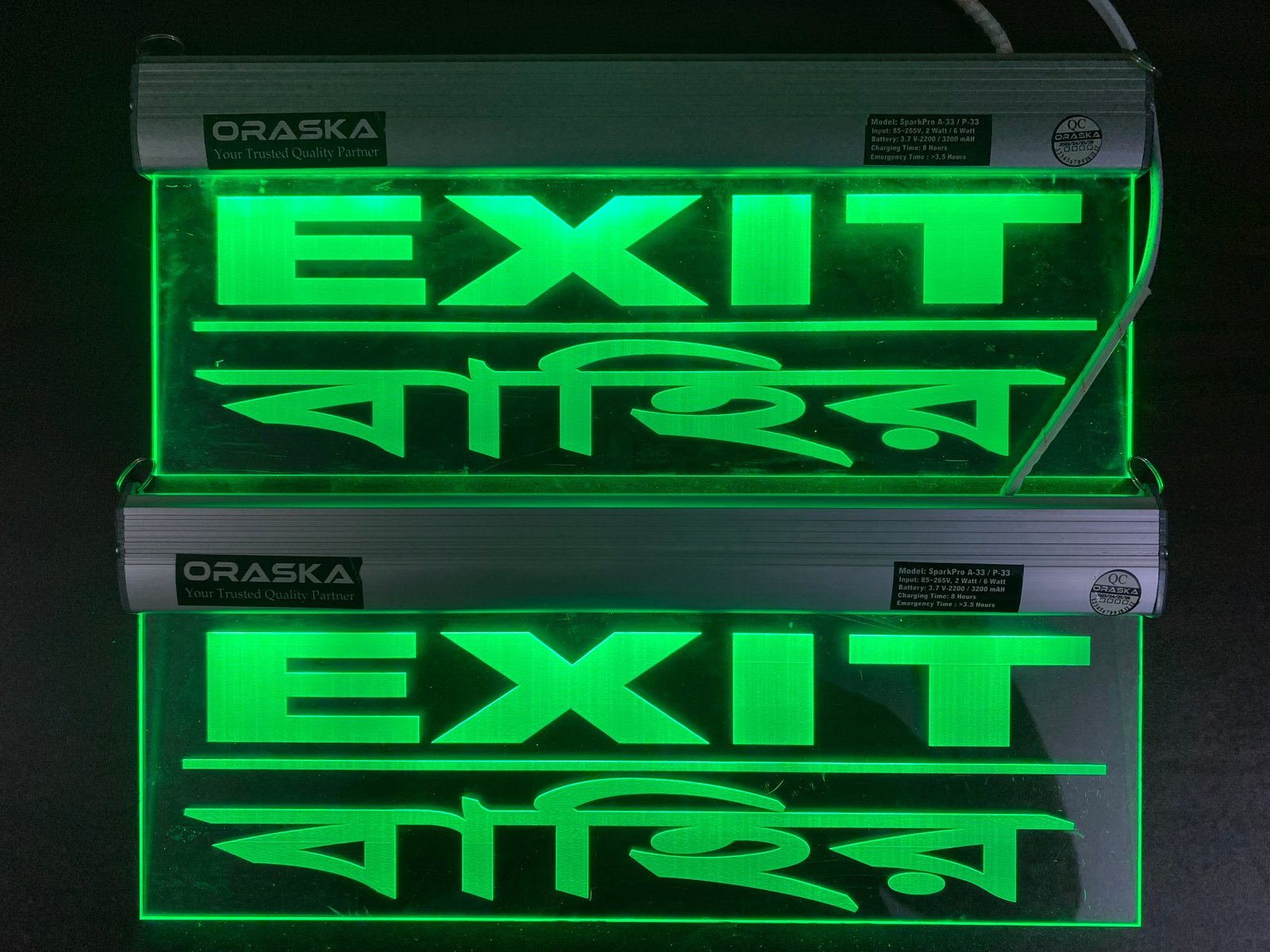 The ORASKA SparkPro A-33 MEGA Clear Exit Sign Light is a compact, premium-grade emergency signage solution, crafted with precision for modern safety compliance. Its single-sided clear engraved acrylic panel with aluminum channel body ensures sleek design, high durability, and crystal-clear visibility.