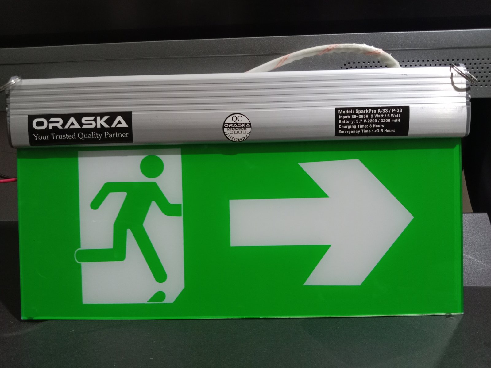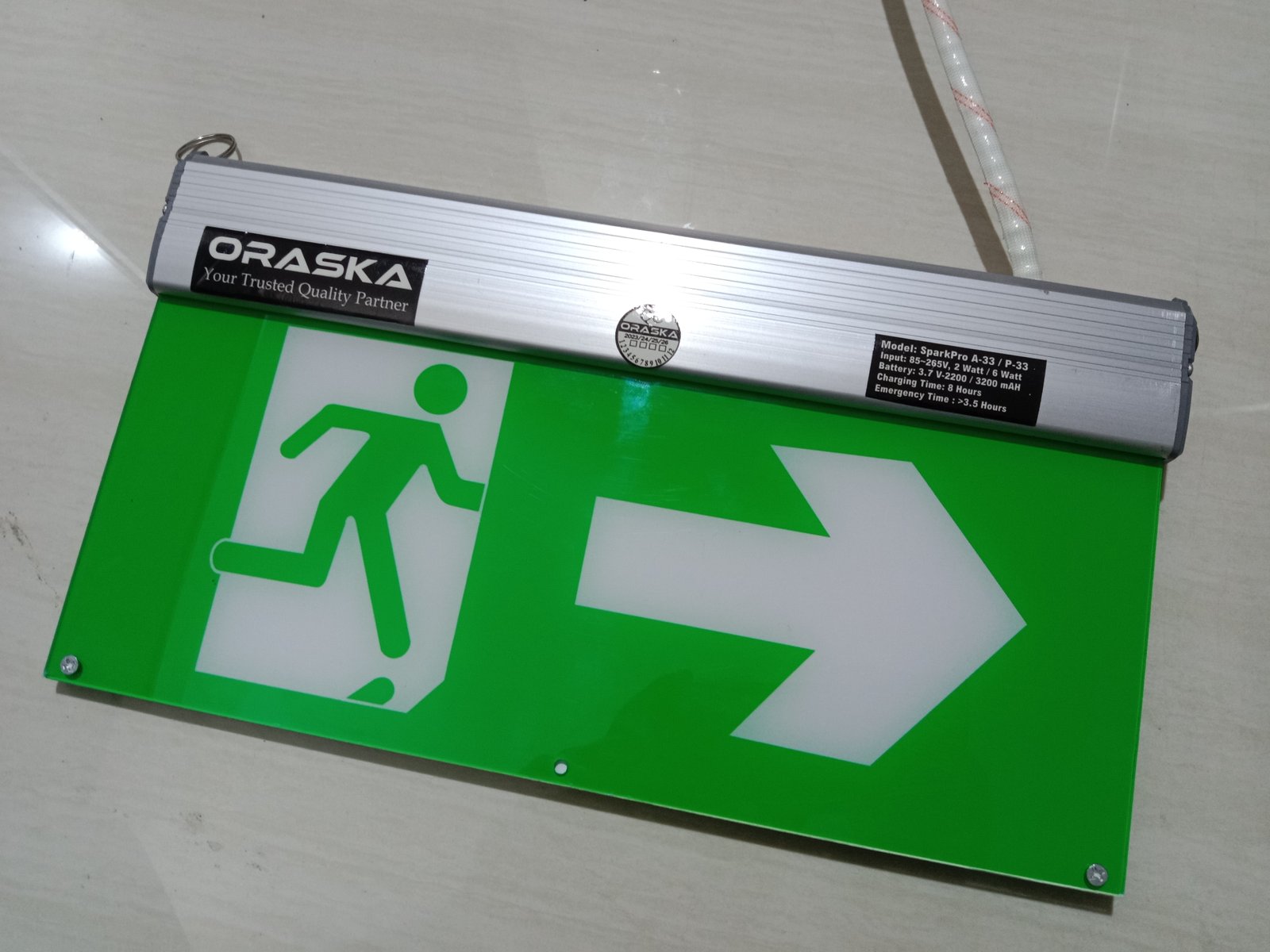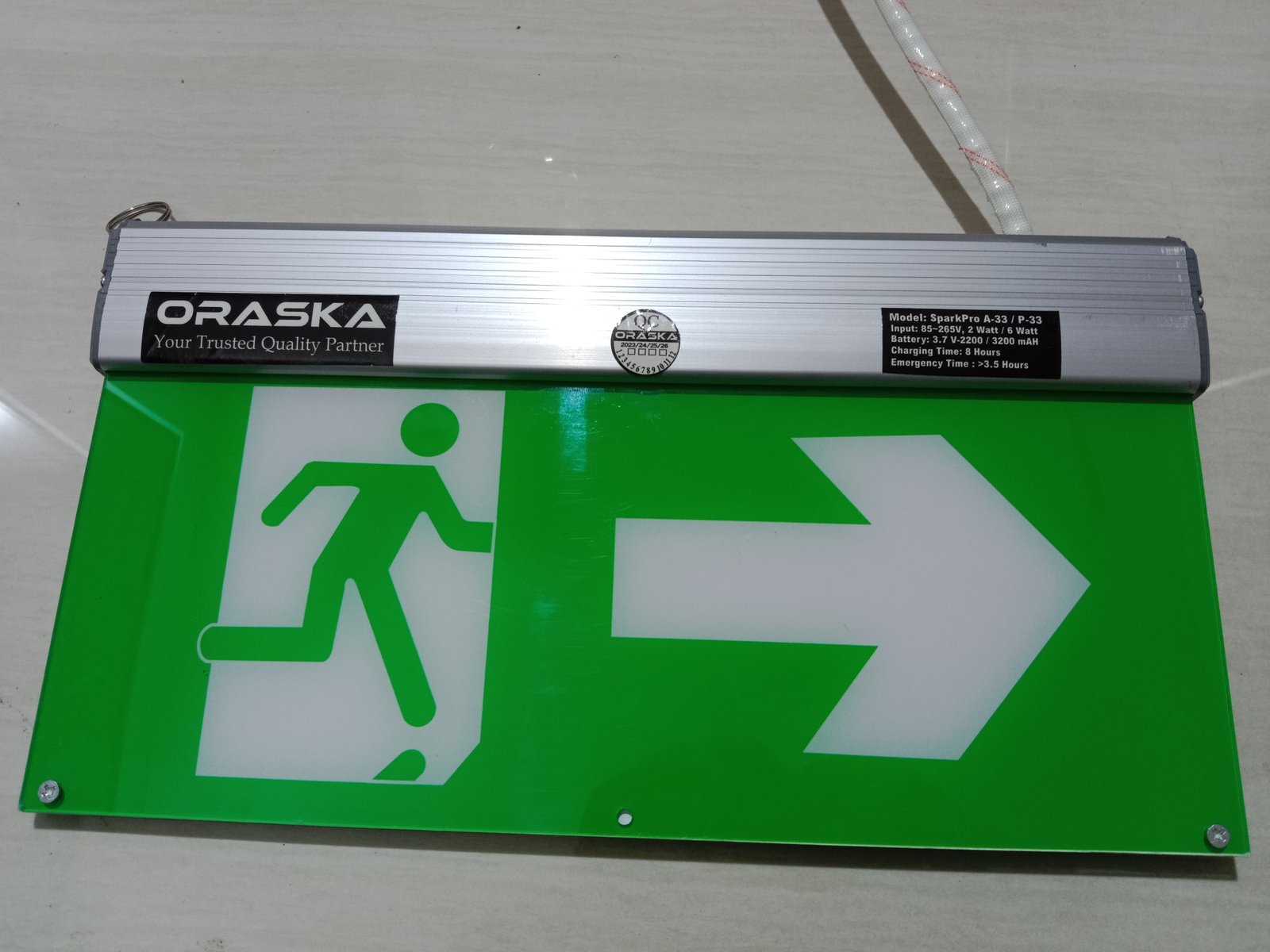 The ORASKA SparkPro P-33 Smart Color Contrast Exit Sign Light is a next-generation emergency signage solution, engineered for maximum clarity and safety. Designed with dual 3mm transparent imported acrylic panels, sandwiched with UV-printed design files in the middle, the P-33 offers a modern, vibrant, and high-contrast exit display that ensures long-distance visibility in critical situations.