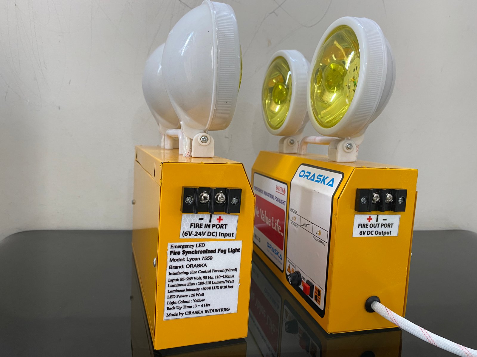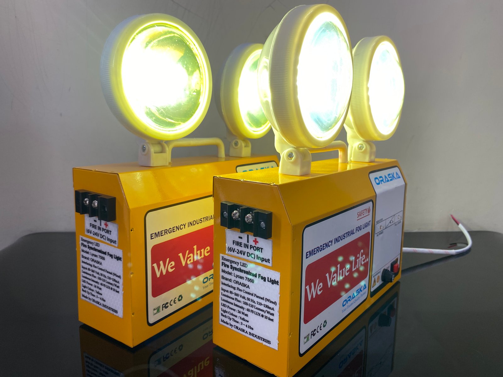 The ORASKA Lycan7559 is a next-generation Fire-Synchronized Emergency Fog Light, specifically designed to ensure uninterrupted visibility during critical fire or power failure scenarios.