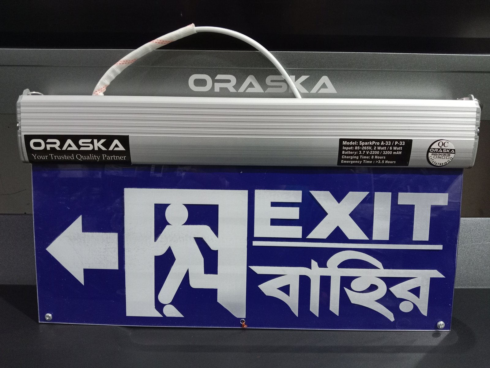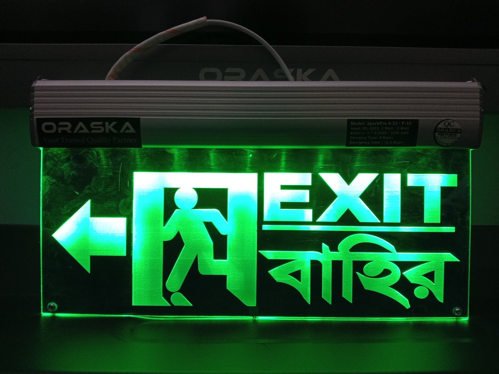 🔋 ORASKA SparkPro AA-33 Slim Both Side Exit Sign Light