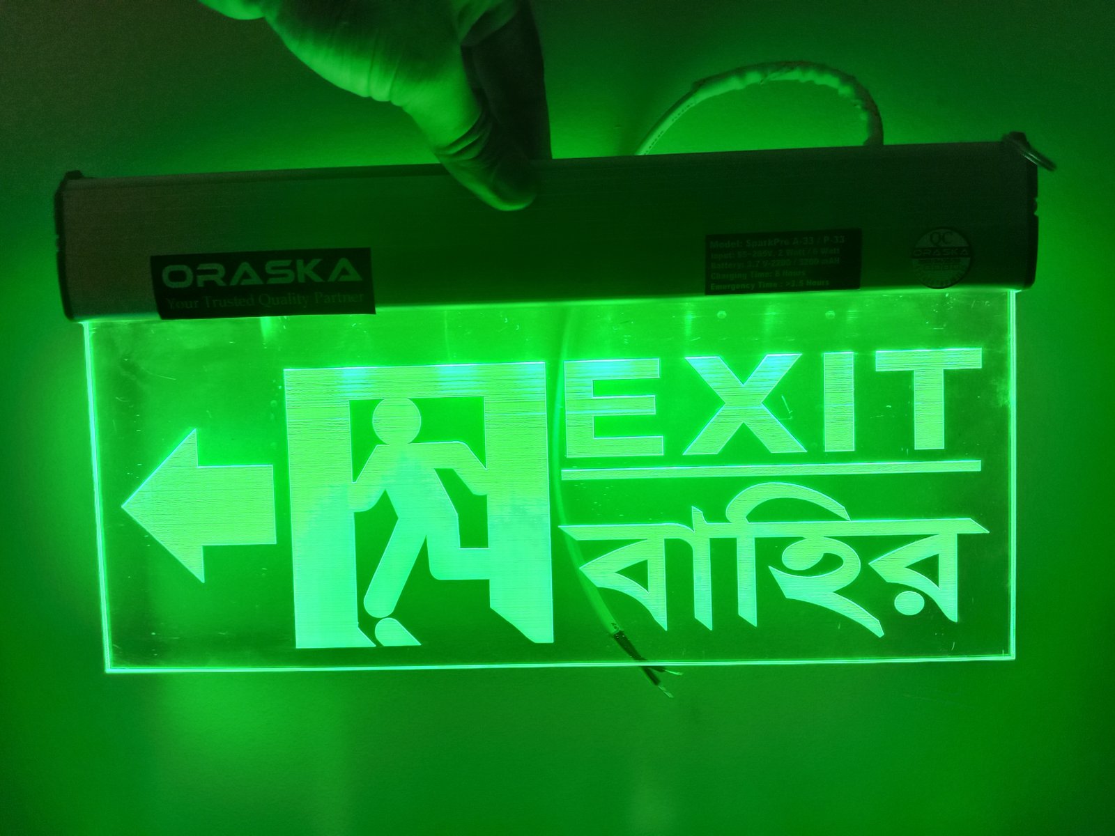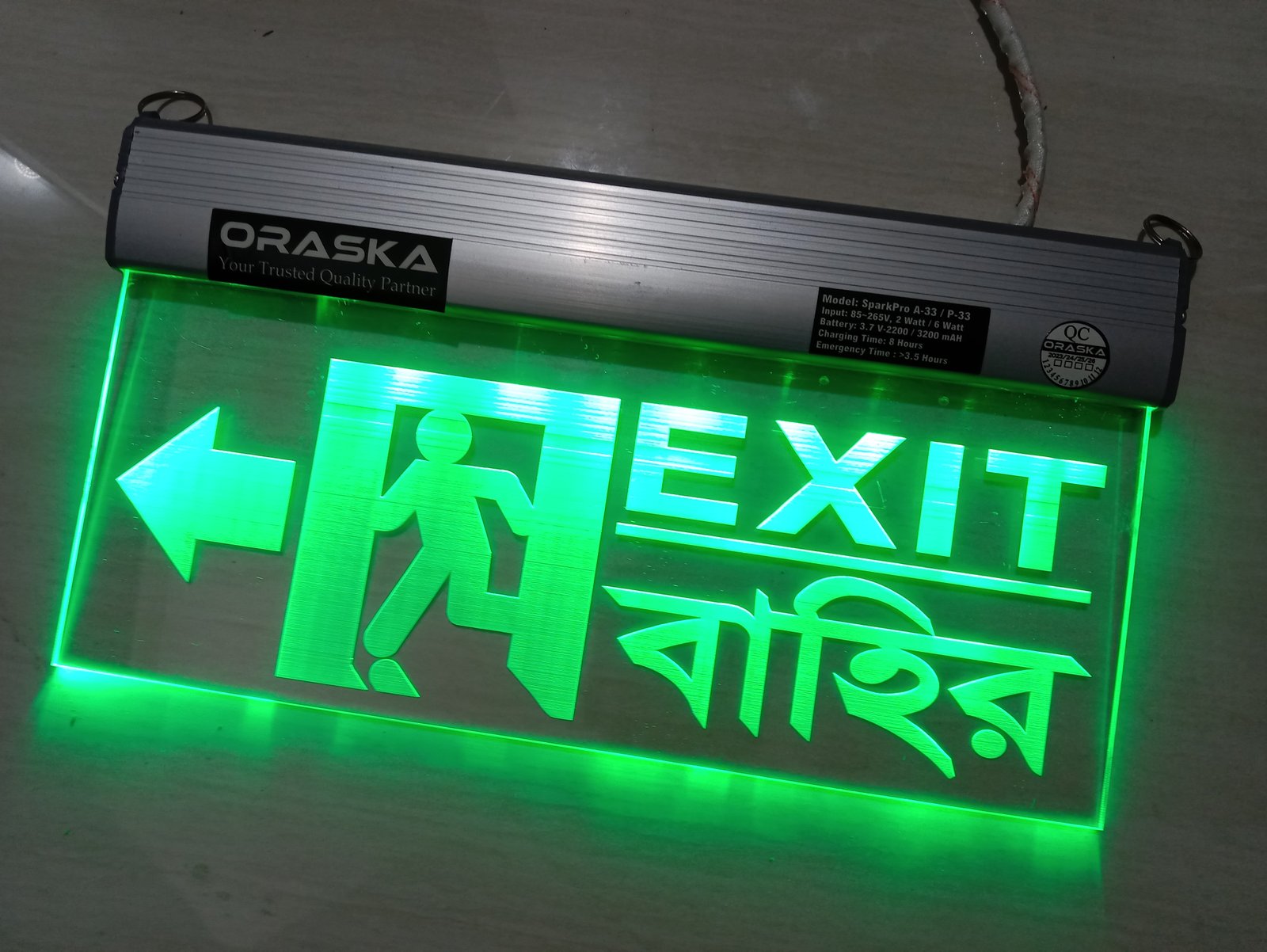 The ORASKA SparkPro A-33 Clear Exit Sign Light is a compact, premium-grade emergency signage solution, crafted with precision for modern safety compliance. Its single-sided clear engraved acrylic panel with aluminum channel body ensures sleek design, high durability, and crystal-clear visibility.