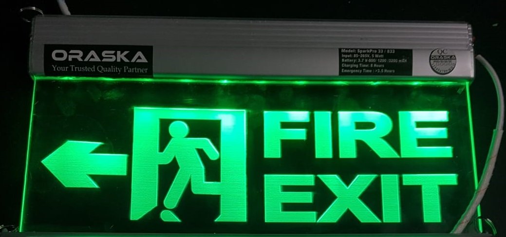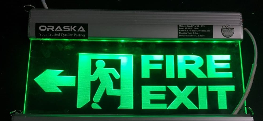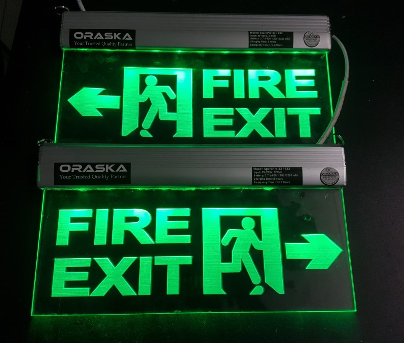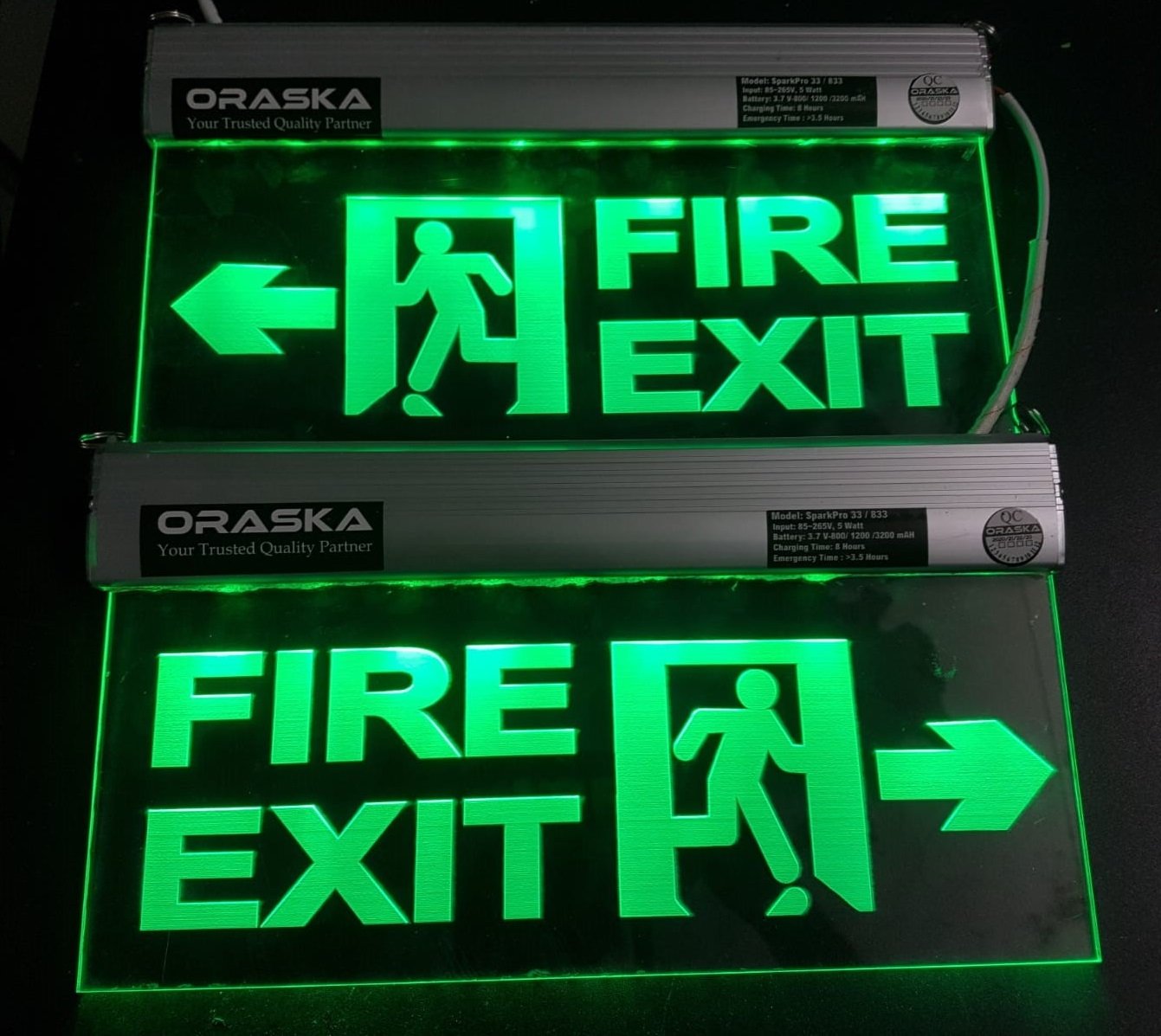 The ORASKA SparkPro A-33 Clear Exit Sign Light is a compact, premium-grade emergency signage solution, crafted with precision for modern safety compliance. Its single-sided clear engraved acrylic panel with aluminum channel body ensures sleek design, high durability, and crystal-clear visibility.