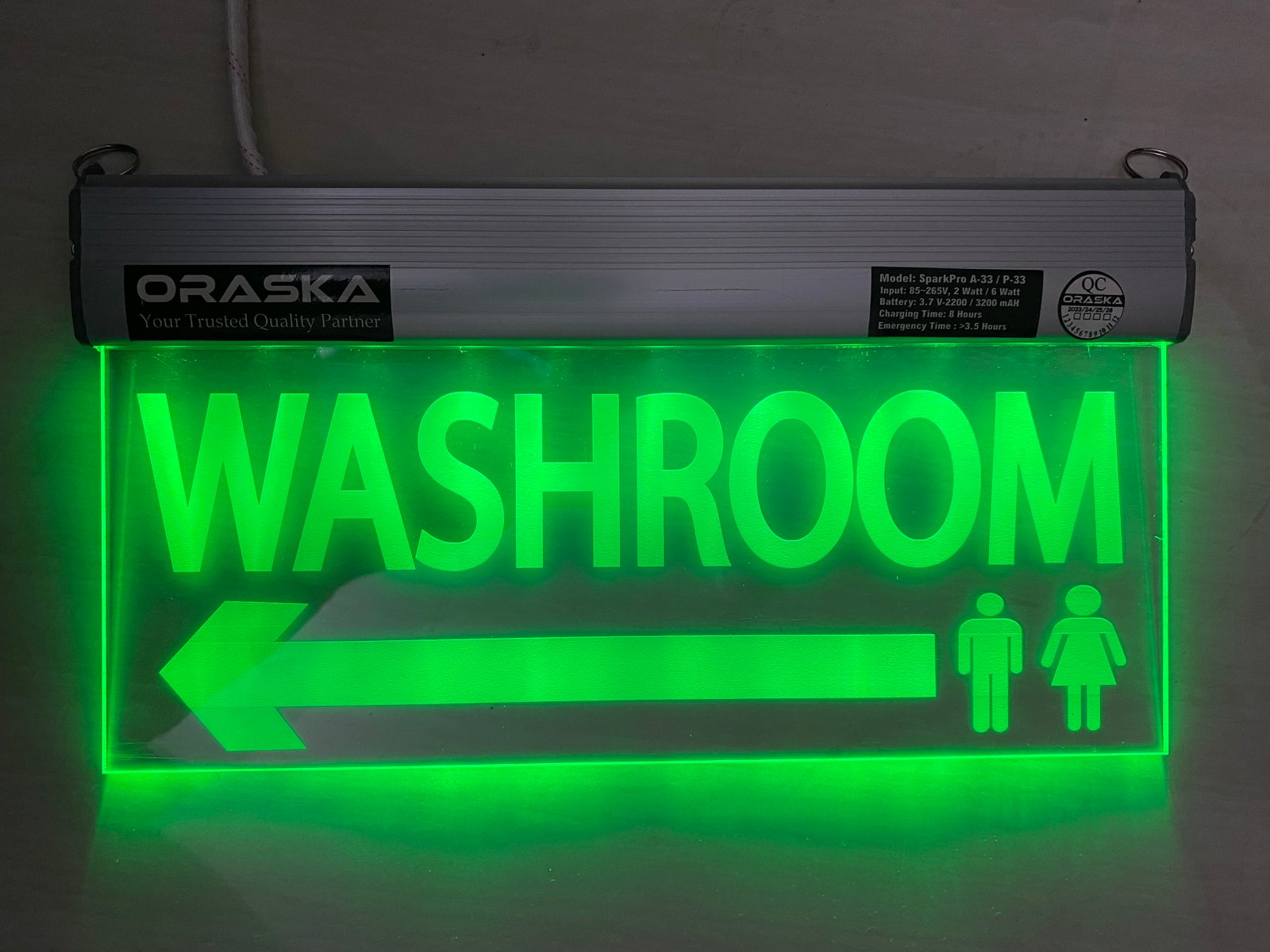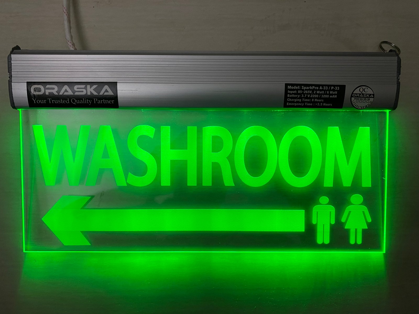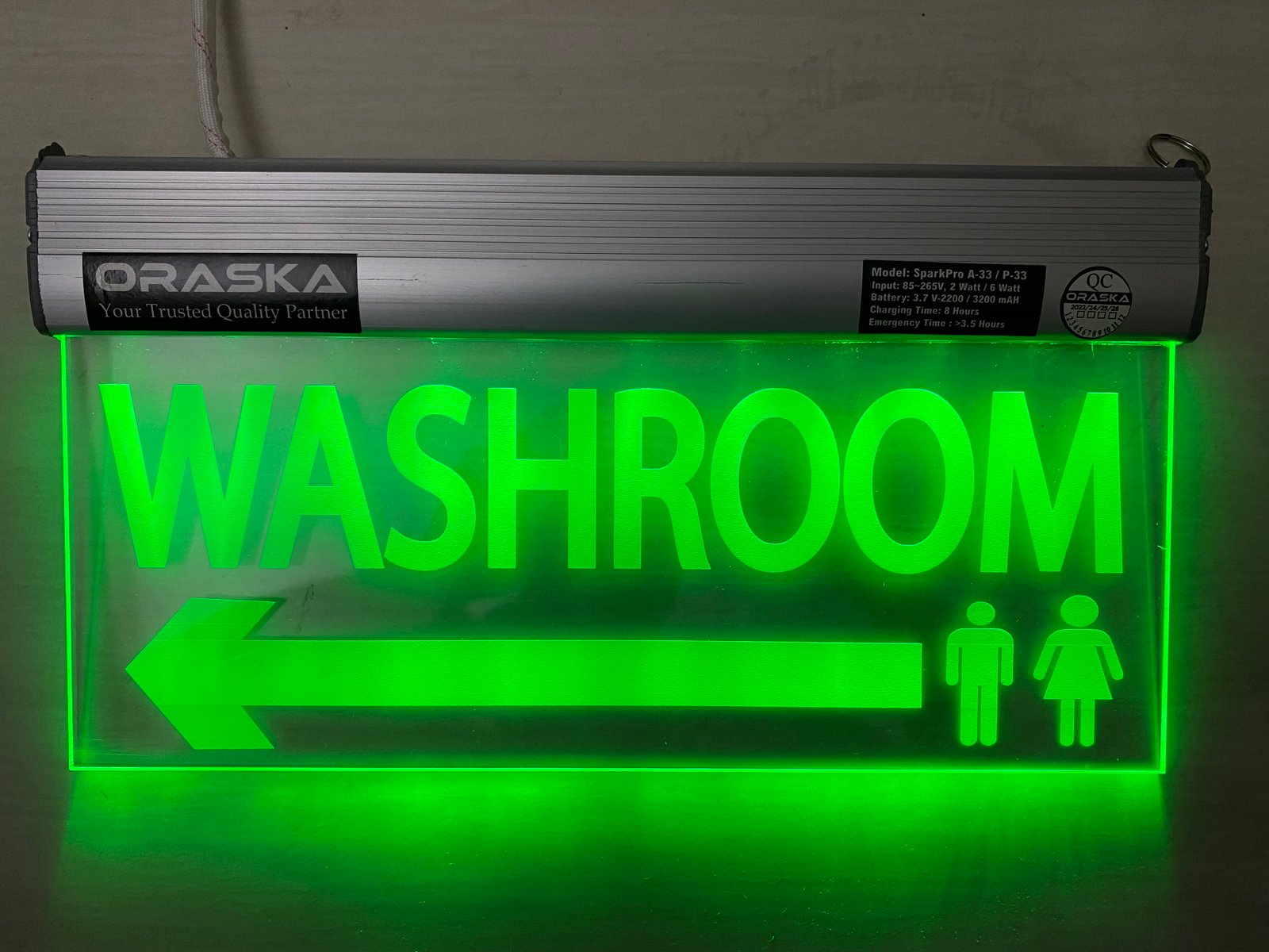 ORASKA Emergency Clear Exit Sign Light SparkPro A-33 Washroom Sign 14 by 8 inch