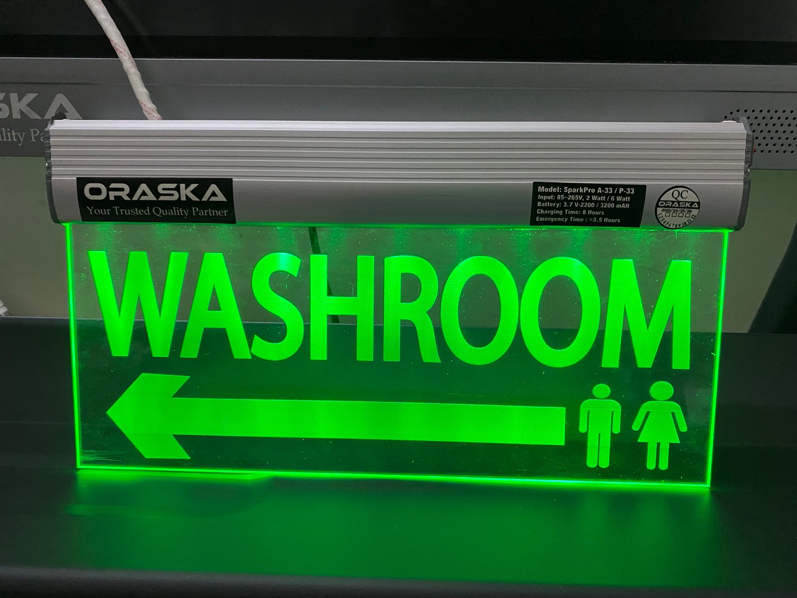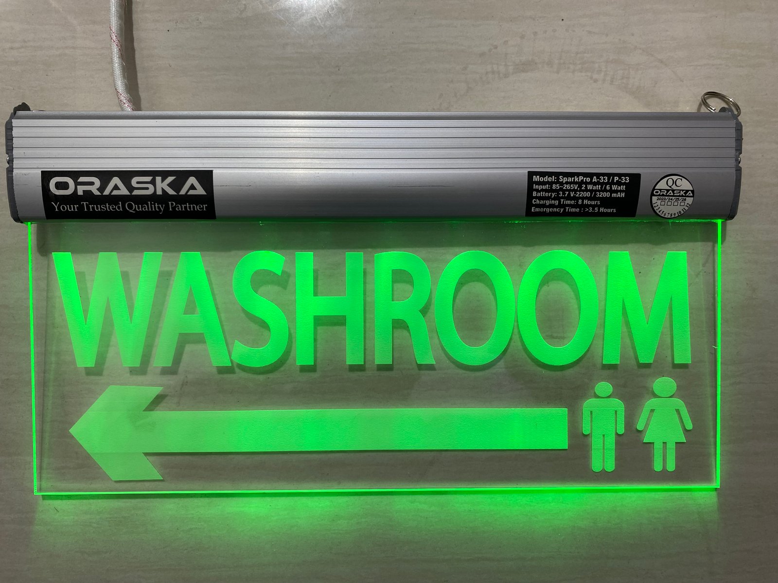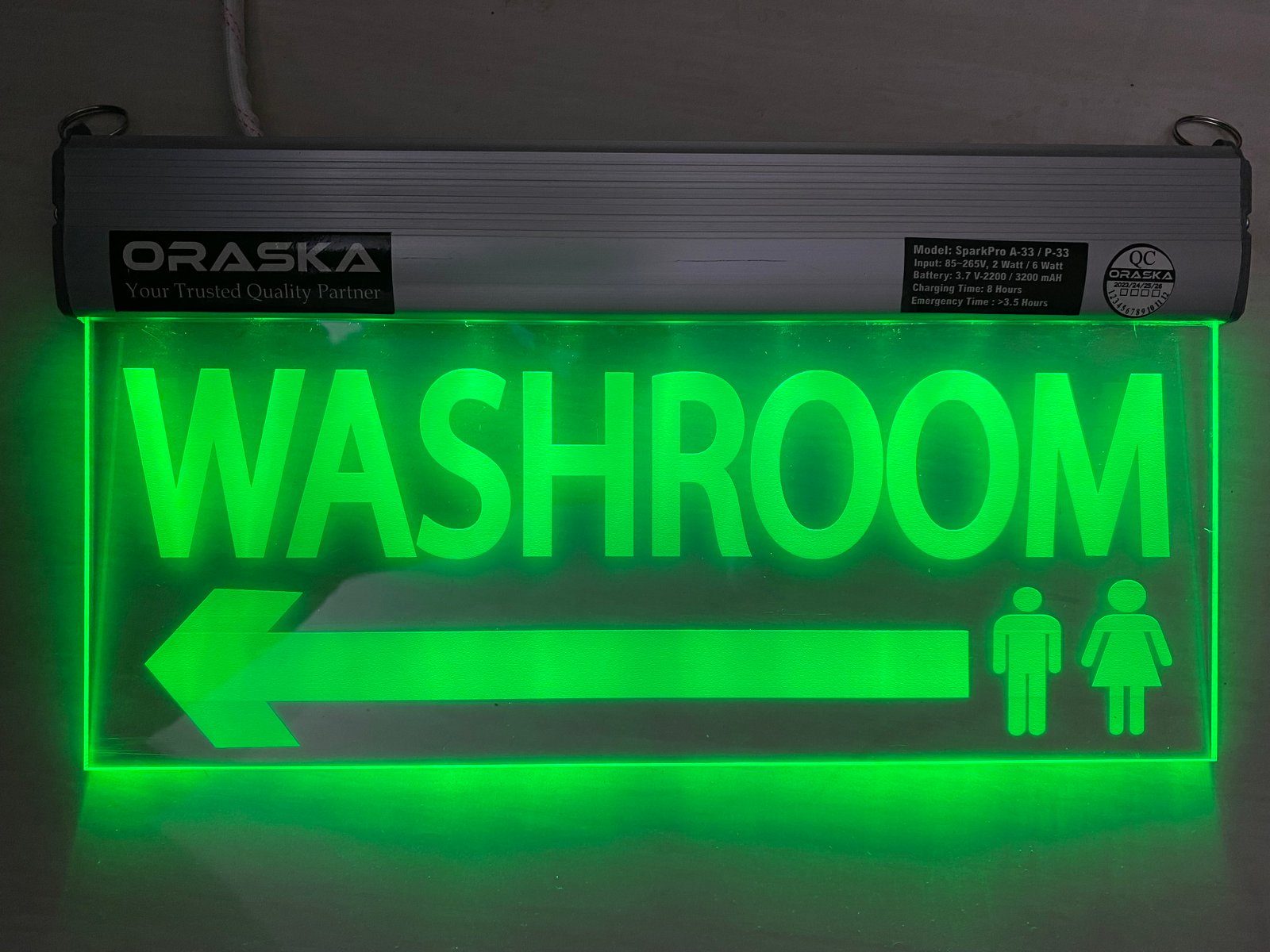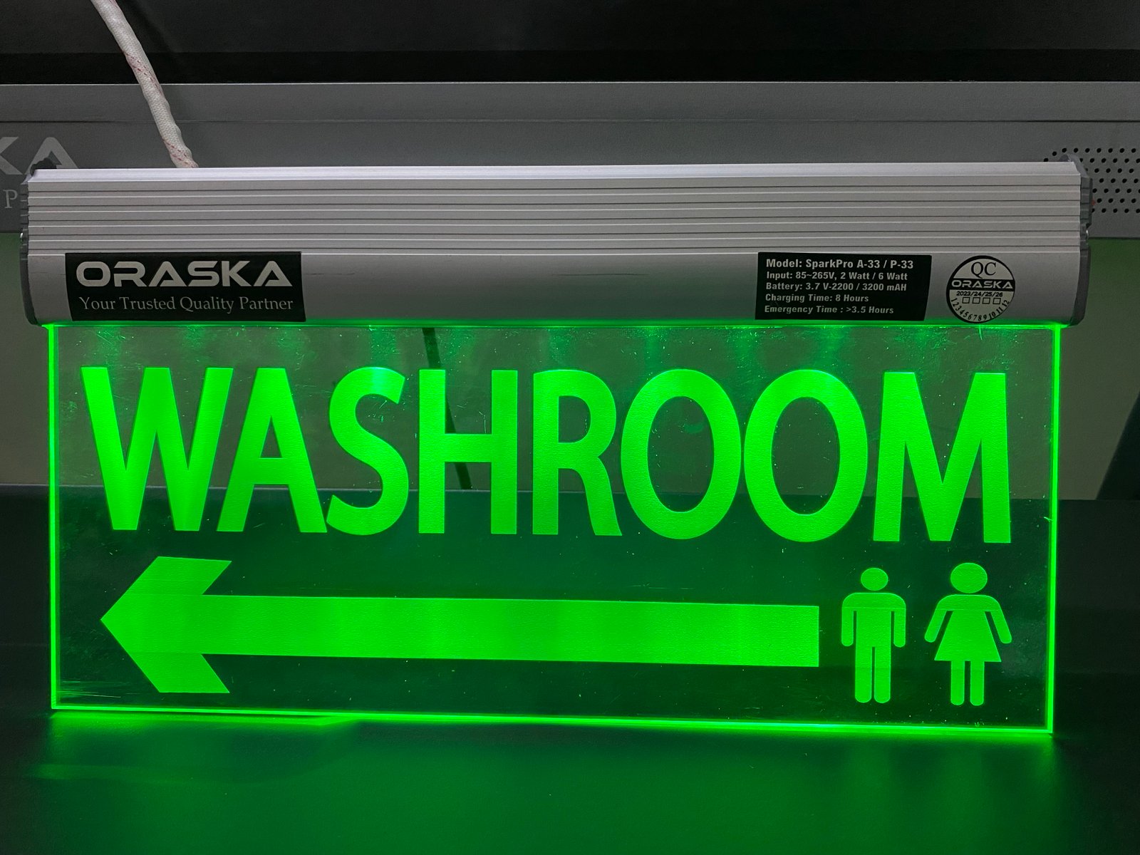 ORASKA Emergency Clear Exit Sign Light SparkPro A-33 Washroom Sign 14 by 8 inch