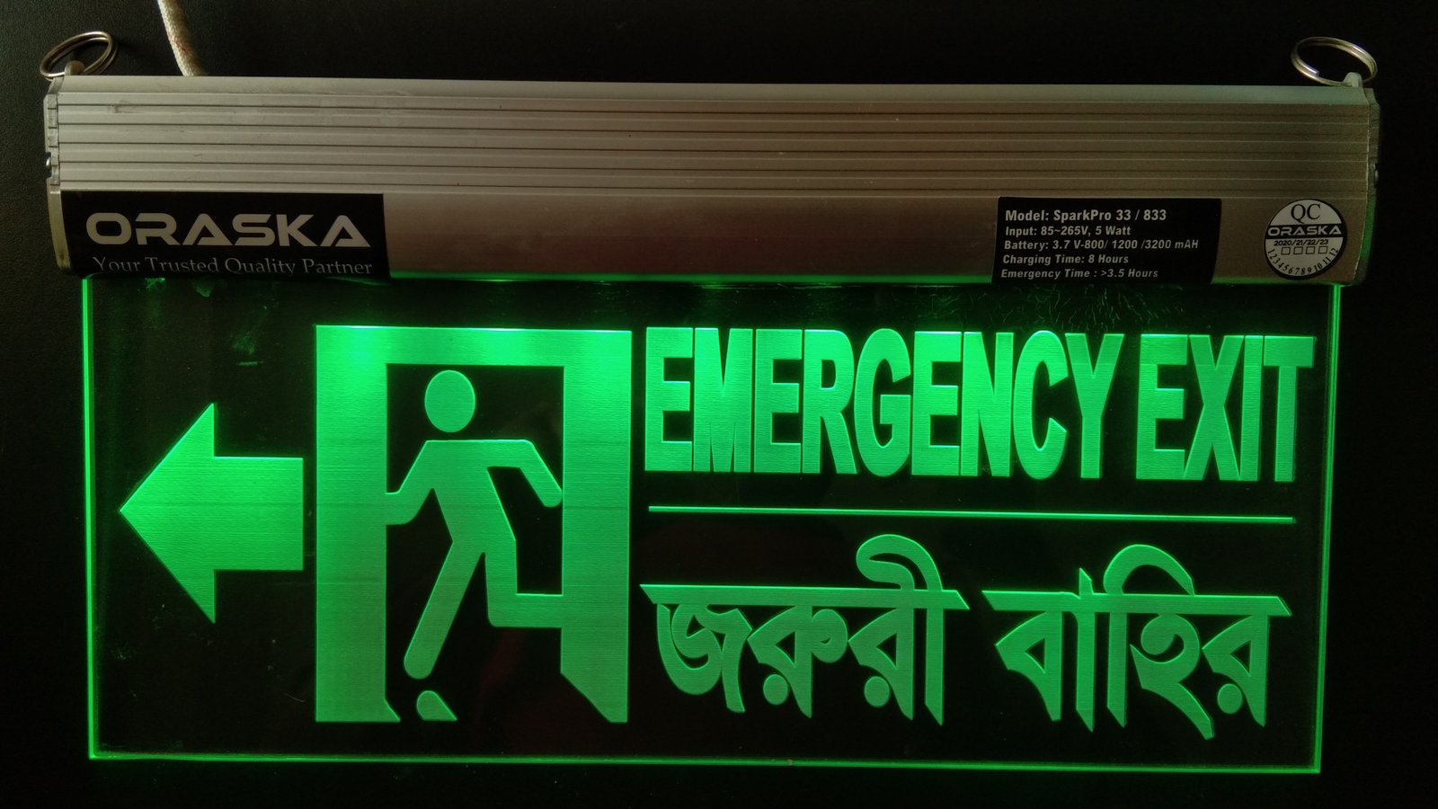 The ORASKA SparkPro A-33 Clear Exit Sign Light is a compact, premium-grade emergency signage solution, crafted with precision for modern safety compliance. Its single-sided clear engraved acrylic panel with aluminum channel body ensures sleek design, high durability, and crystal-clear visibility.