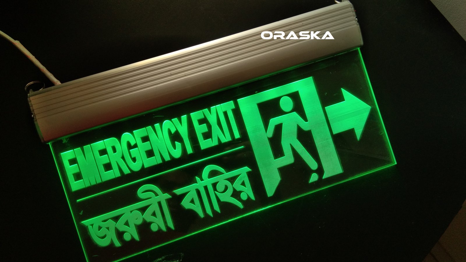 The ORASKA SparkPro A-33 Clear Exit Sign Light is a compact, premium-grade emergency signage solution, crafted with precision for modern safety compliance. Its single-sided clear engraved acrylic panel with aluminum channel body ensures sleek design, high durability, and crystal-clear visibility.