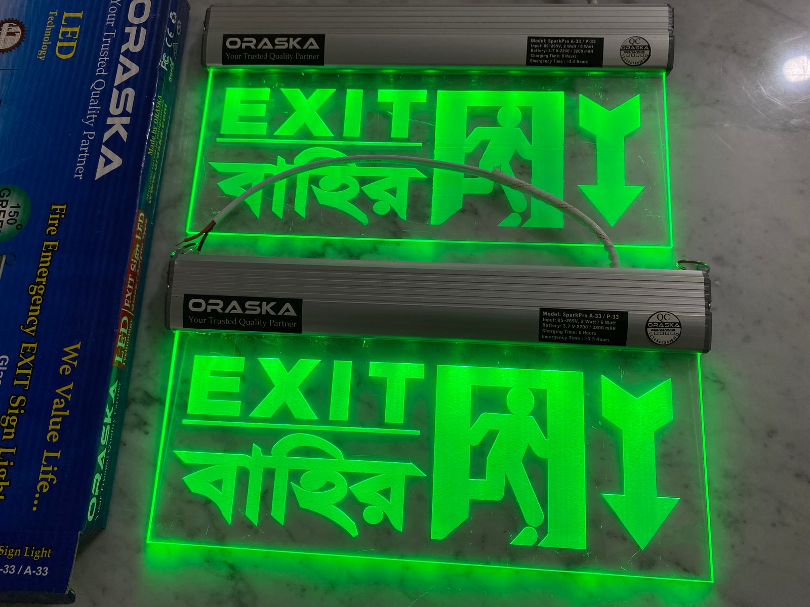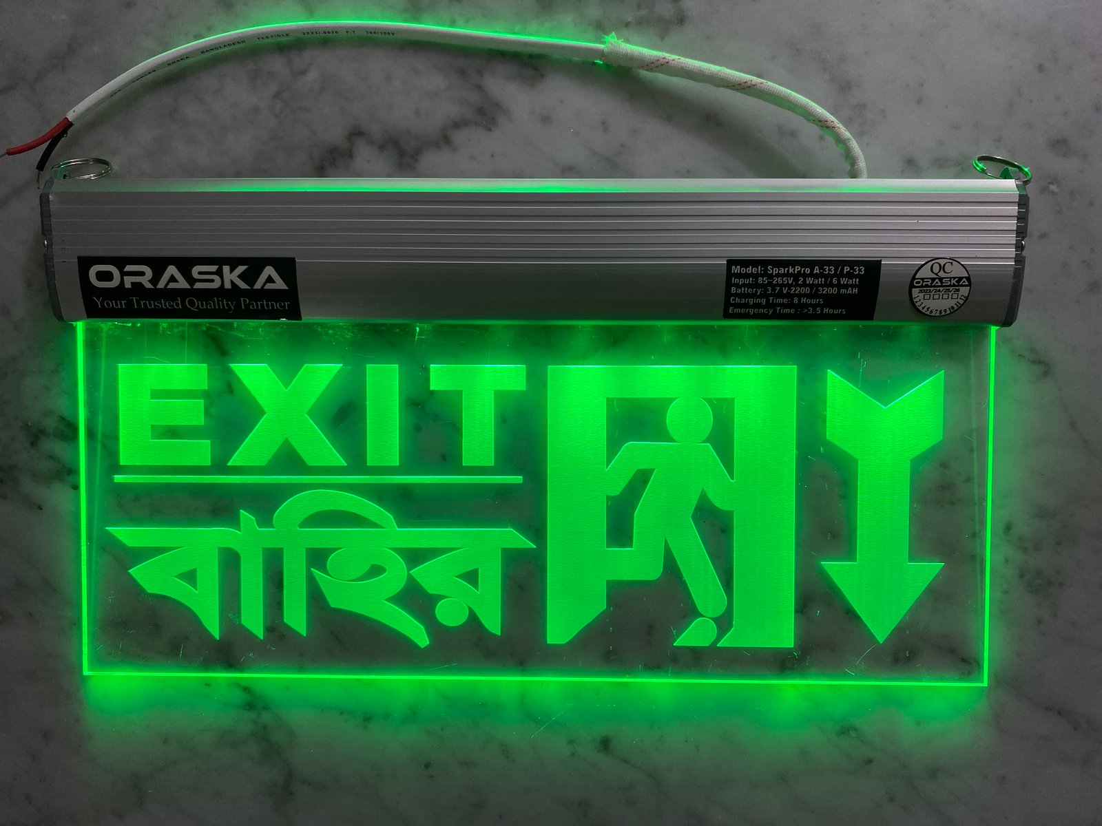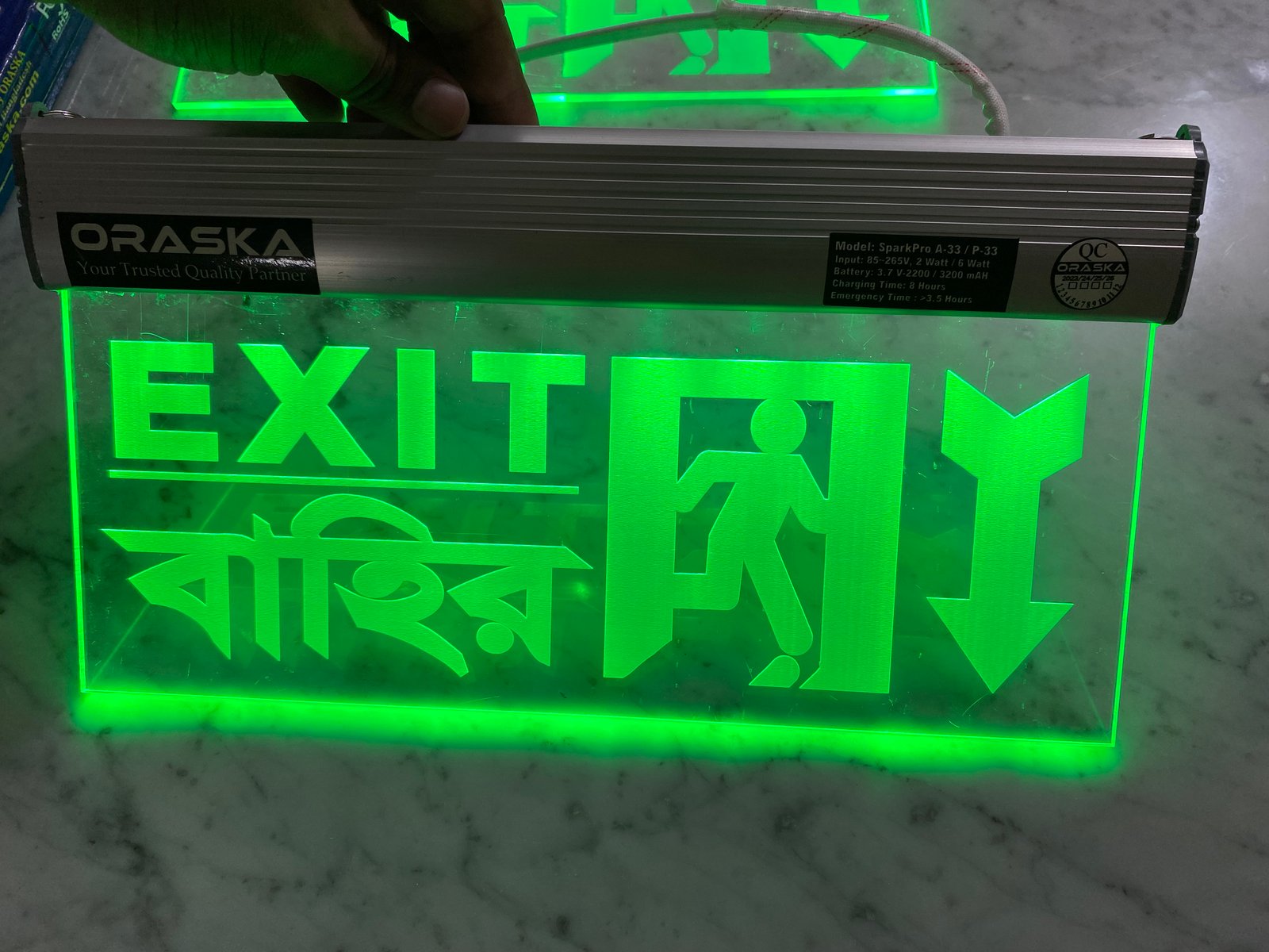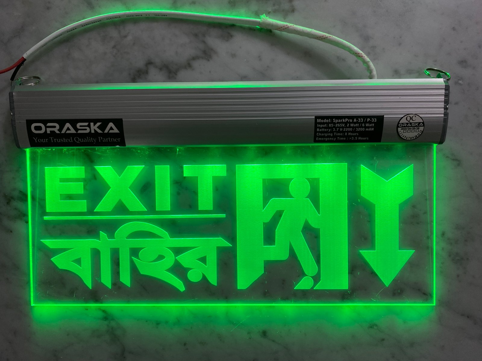 🔋 ORASKA SparkPro A-33 Clear Exit Sign Light