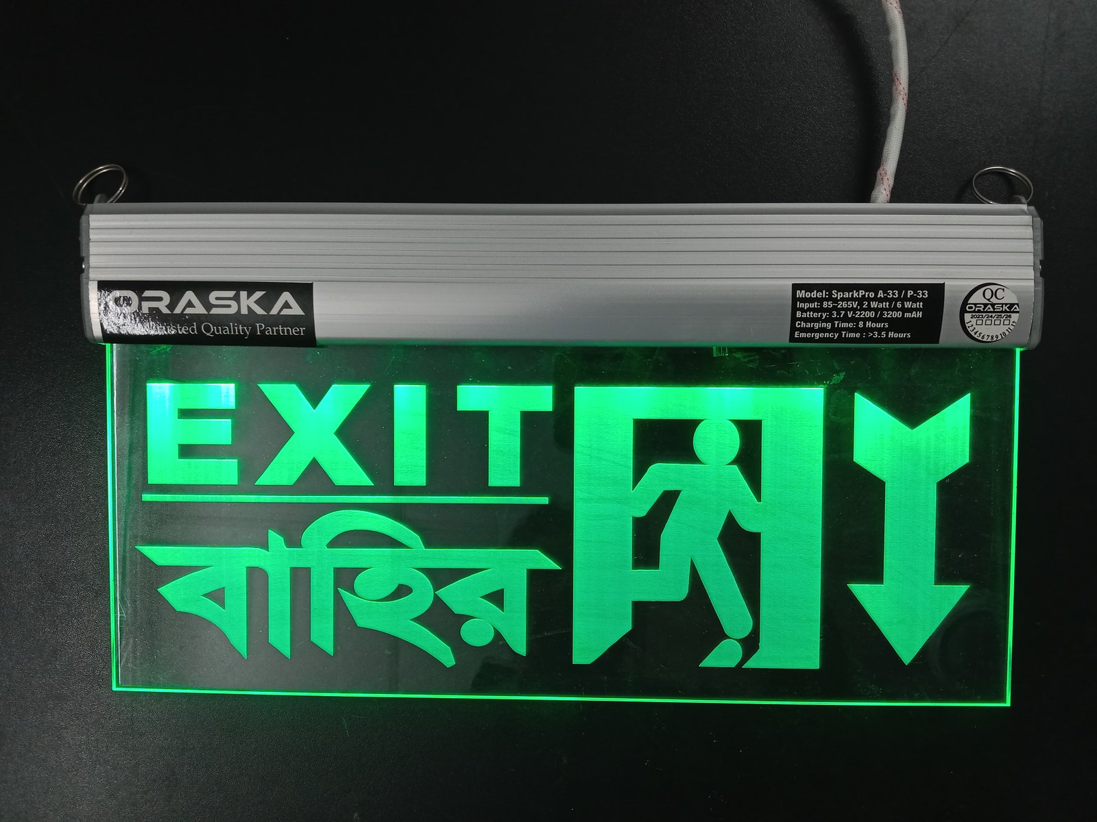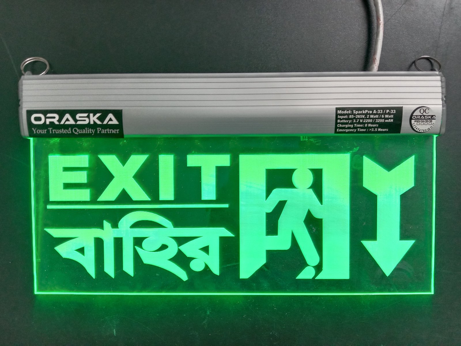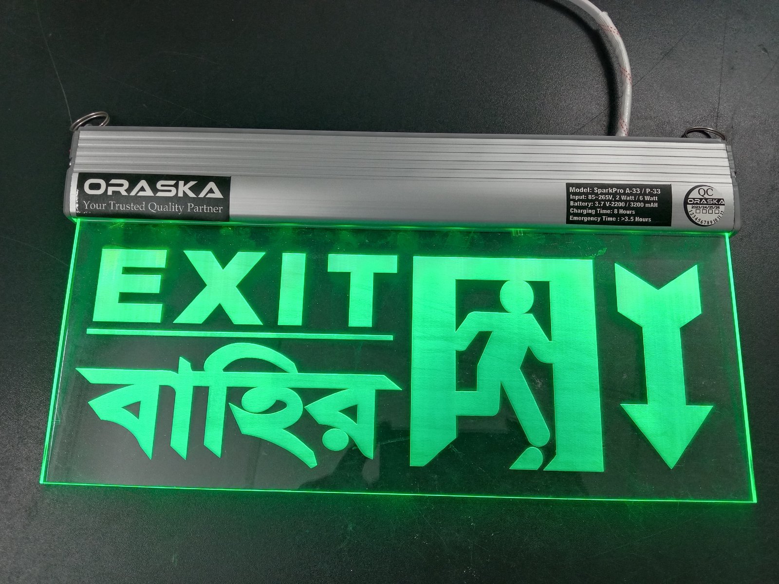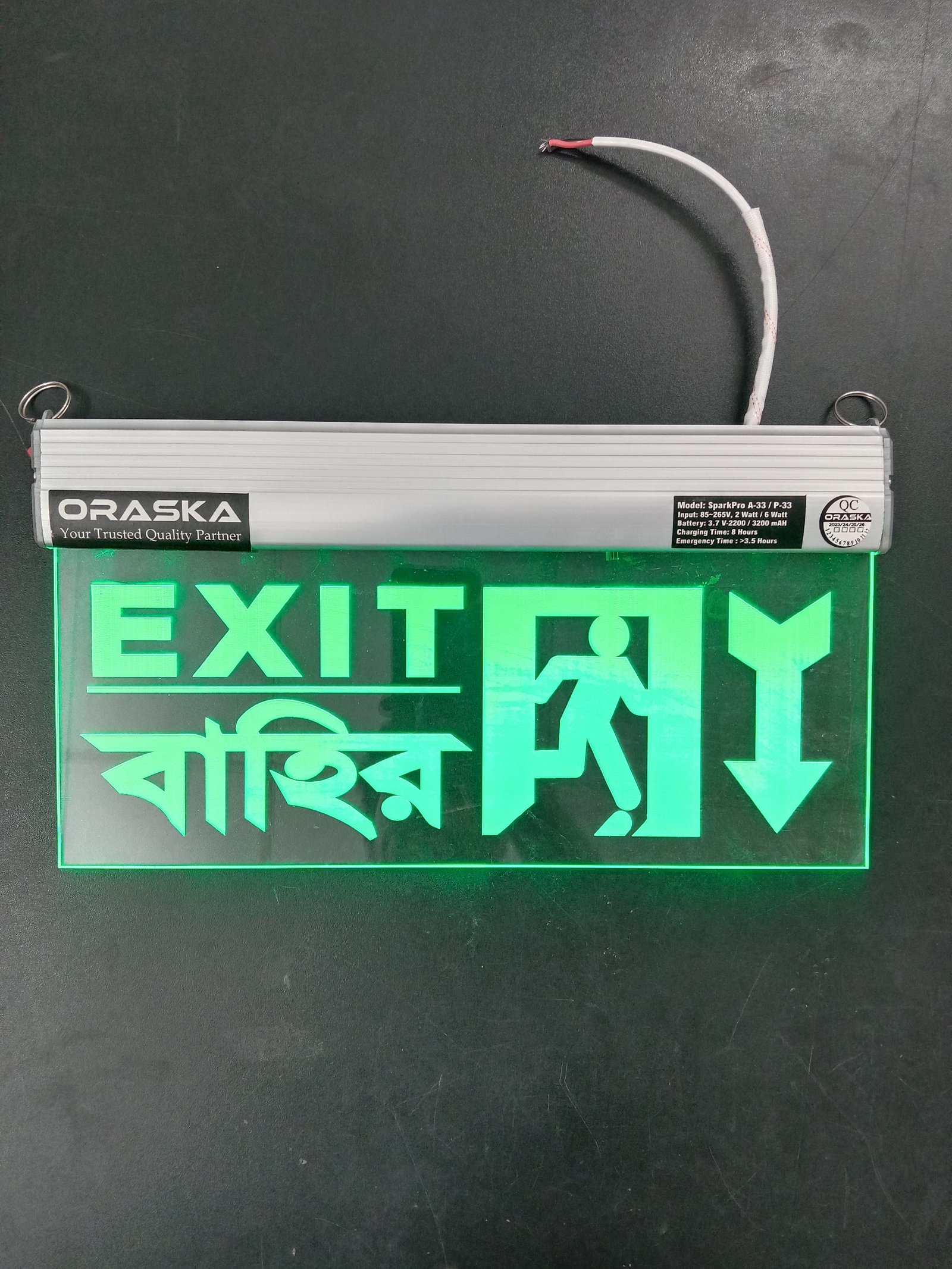 🔋 ORASKA SparkPro A-33 Clear Exit Sign Light