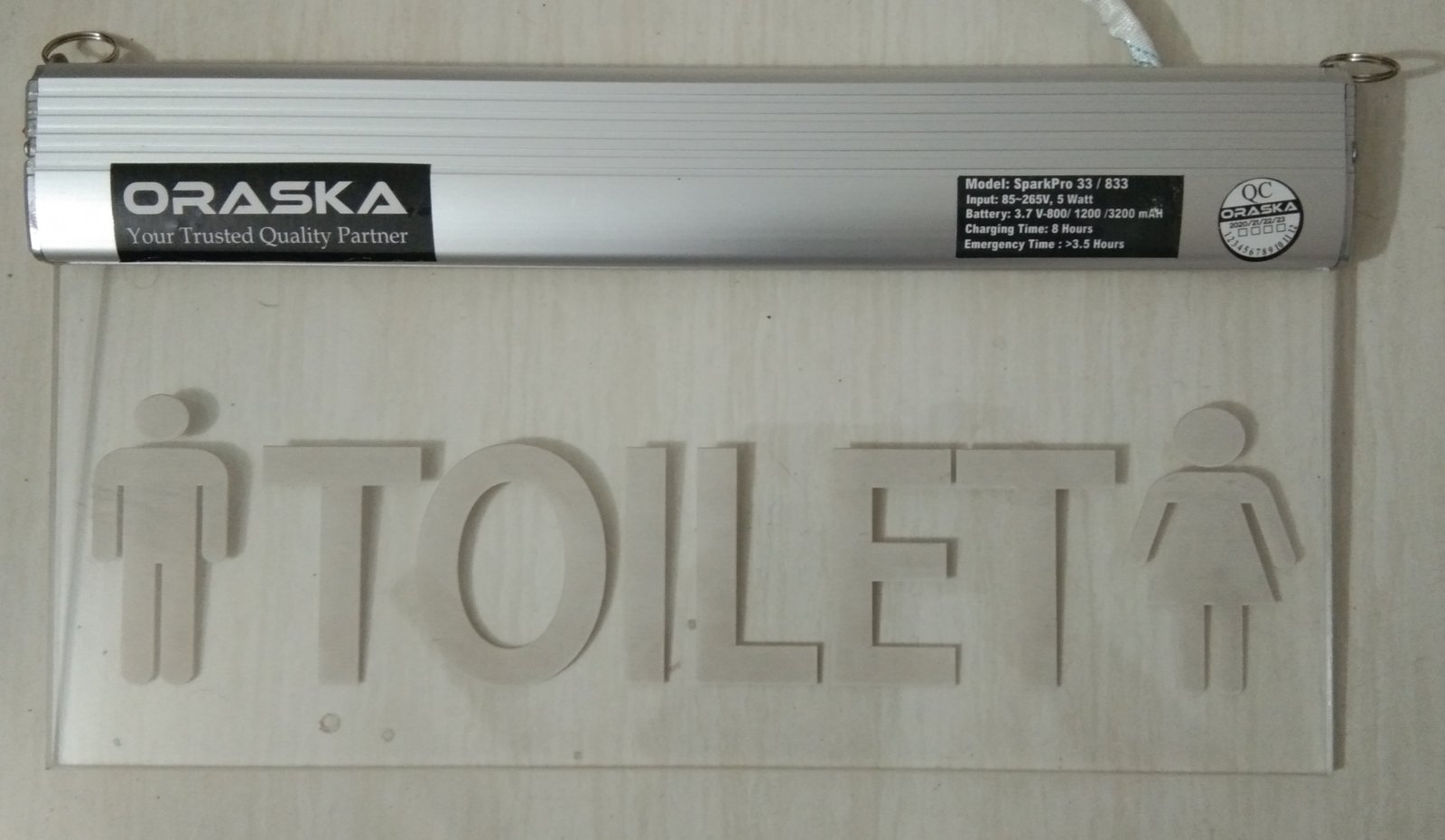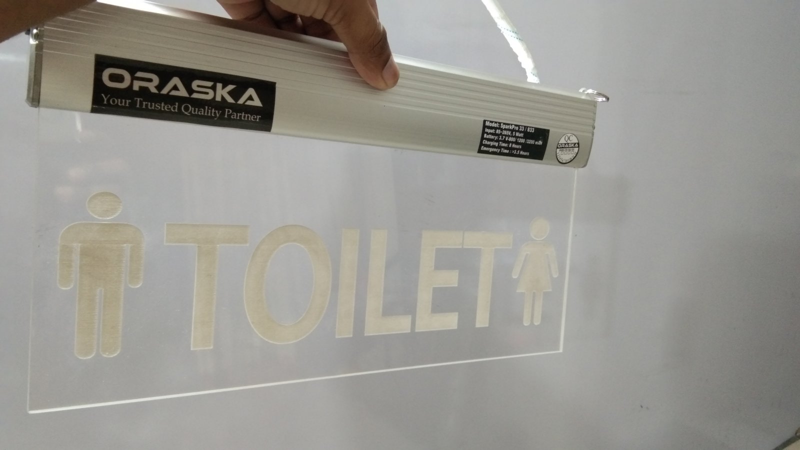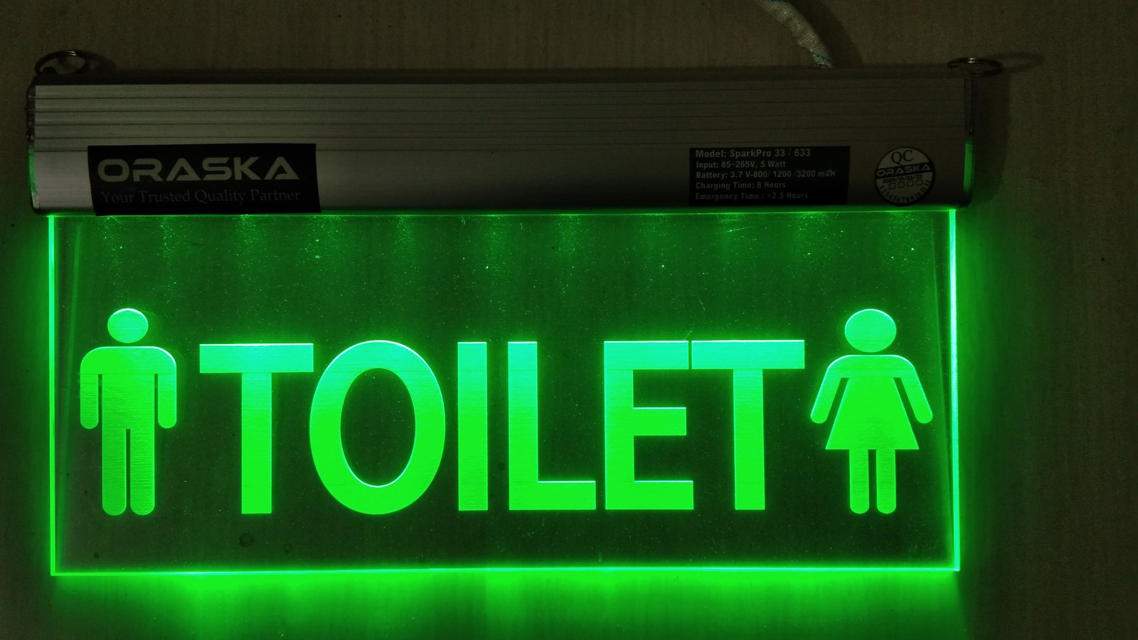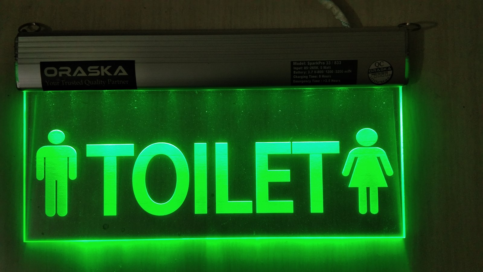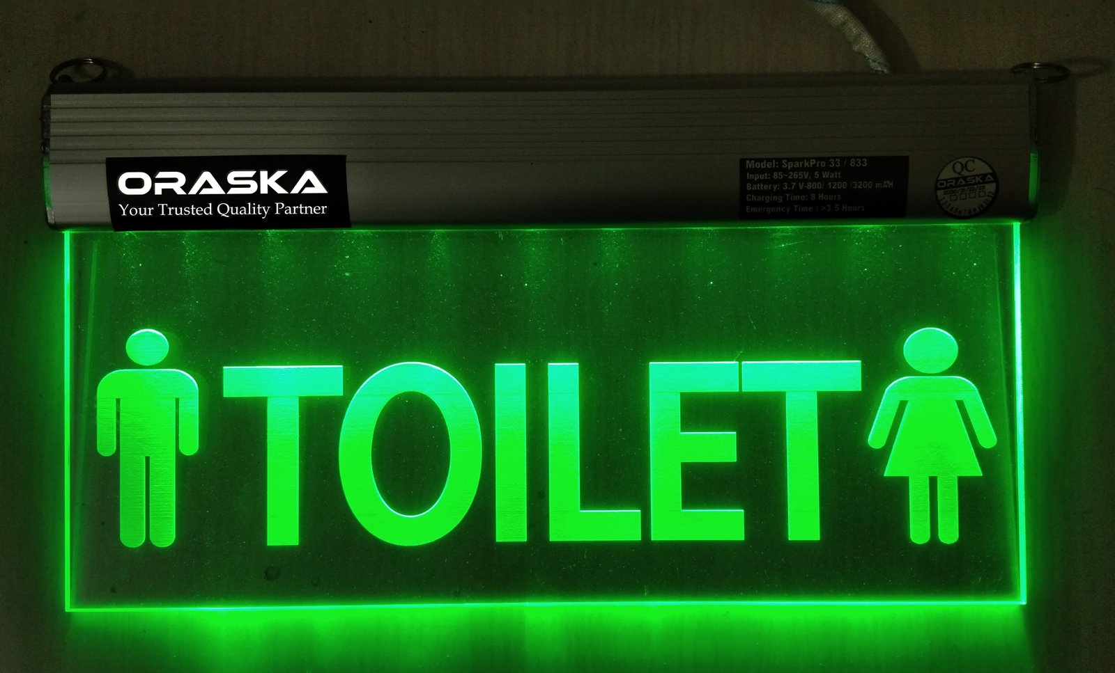 ORASKA Emergency Exit Sign Light SparkPro A-33 14 by 8 inch Washroom-Toilet Sign