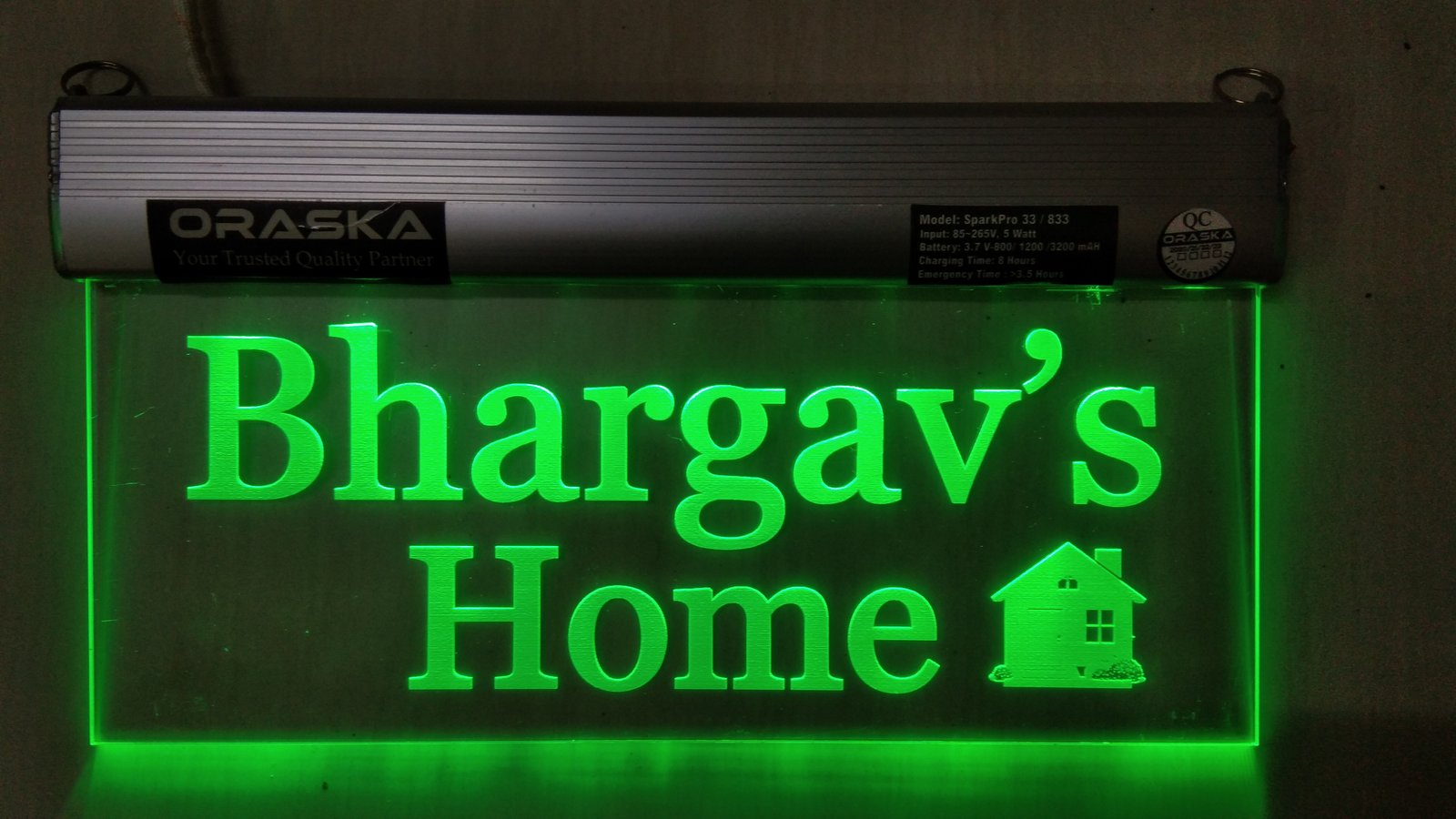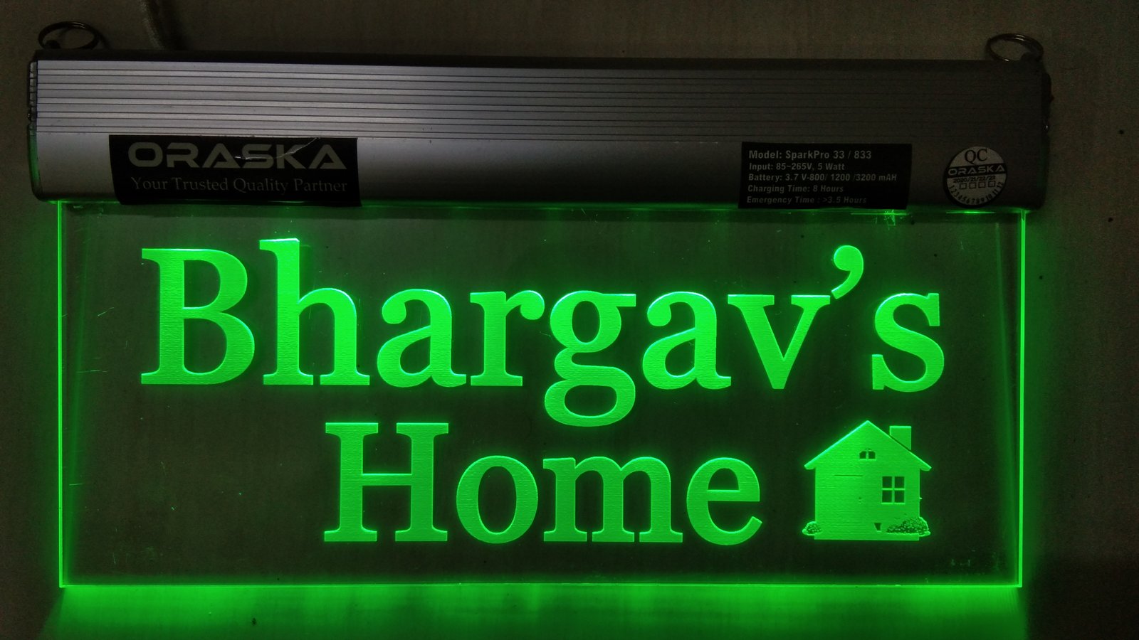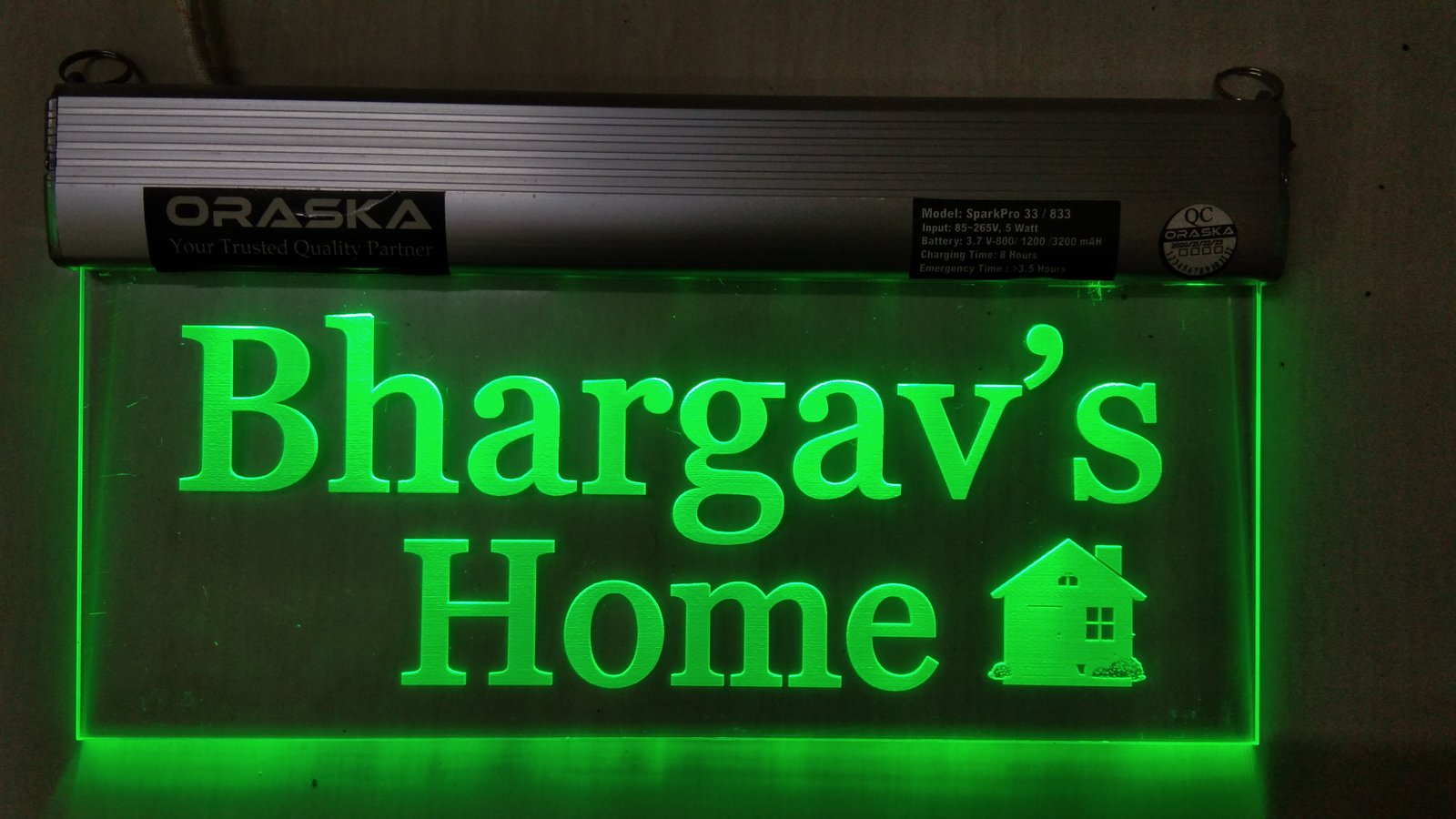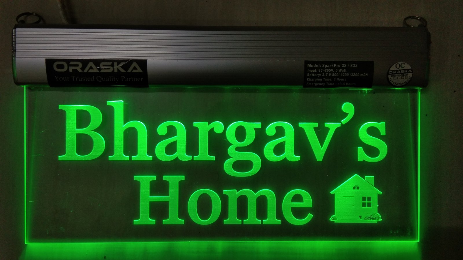 🌟 2.5W LED | 12 High-Efficiency LEDs | 500-600 LUX Brightness | Aluminium Channel with 5mm Imported Engraved Acrylic | Smart BMS Protected Battery
