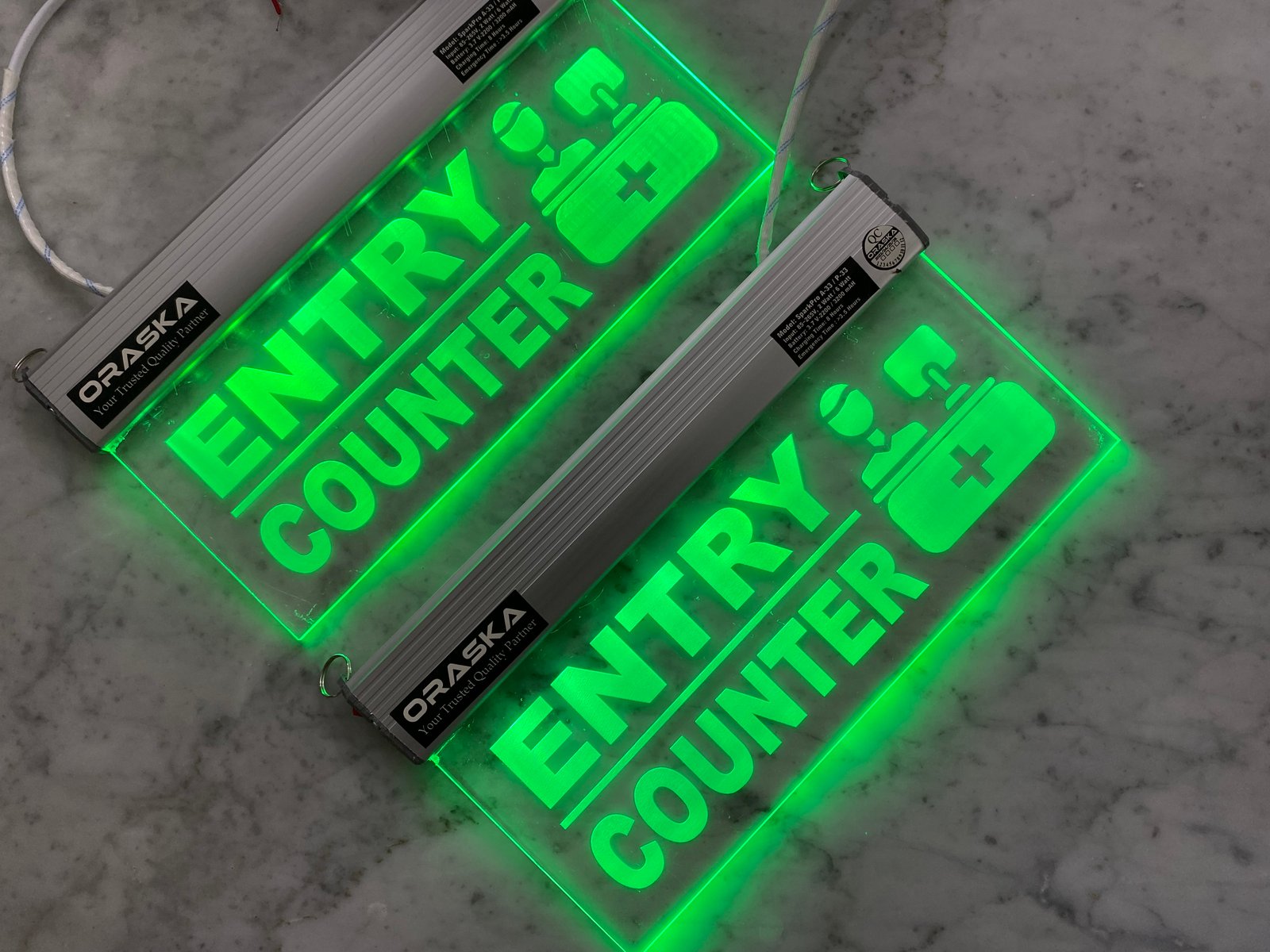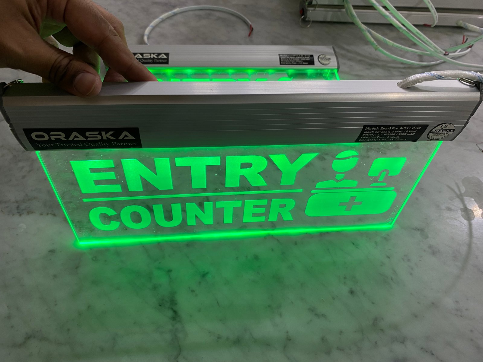 The ORASKA SparkPro A-33 Clear Exit Sign Light is a compact, premium-grade emergency signage solution, crafted with precision for modern safety compliance. Its single-sided clear engraved acrylic panel with aluminum channel body ensures sleek design, high durability, and crystal-clear visibility.