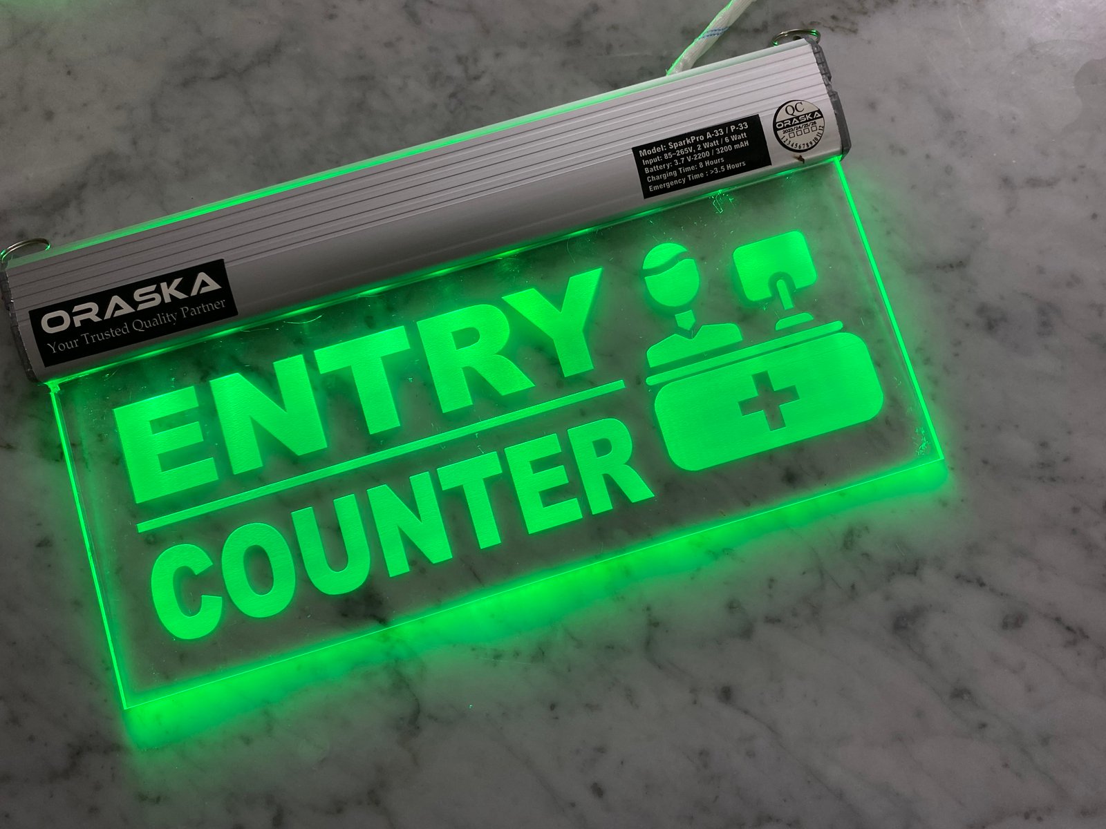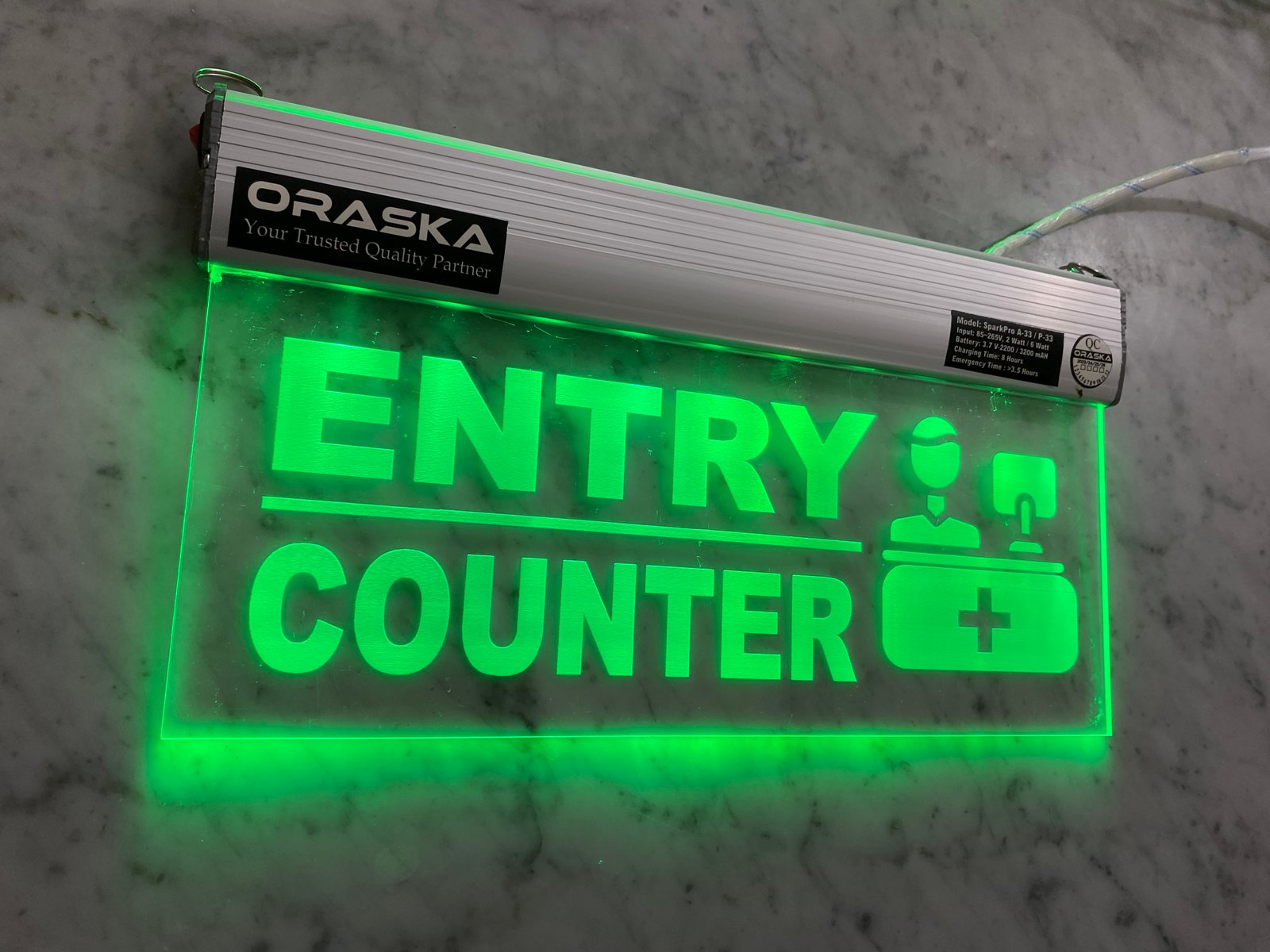 ORASKA Emergency Hospital Entry Counter Sign SparkPro A33 Clear Exit Sign Light 14 by 8 inch