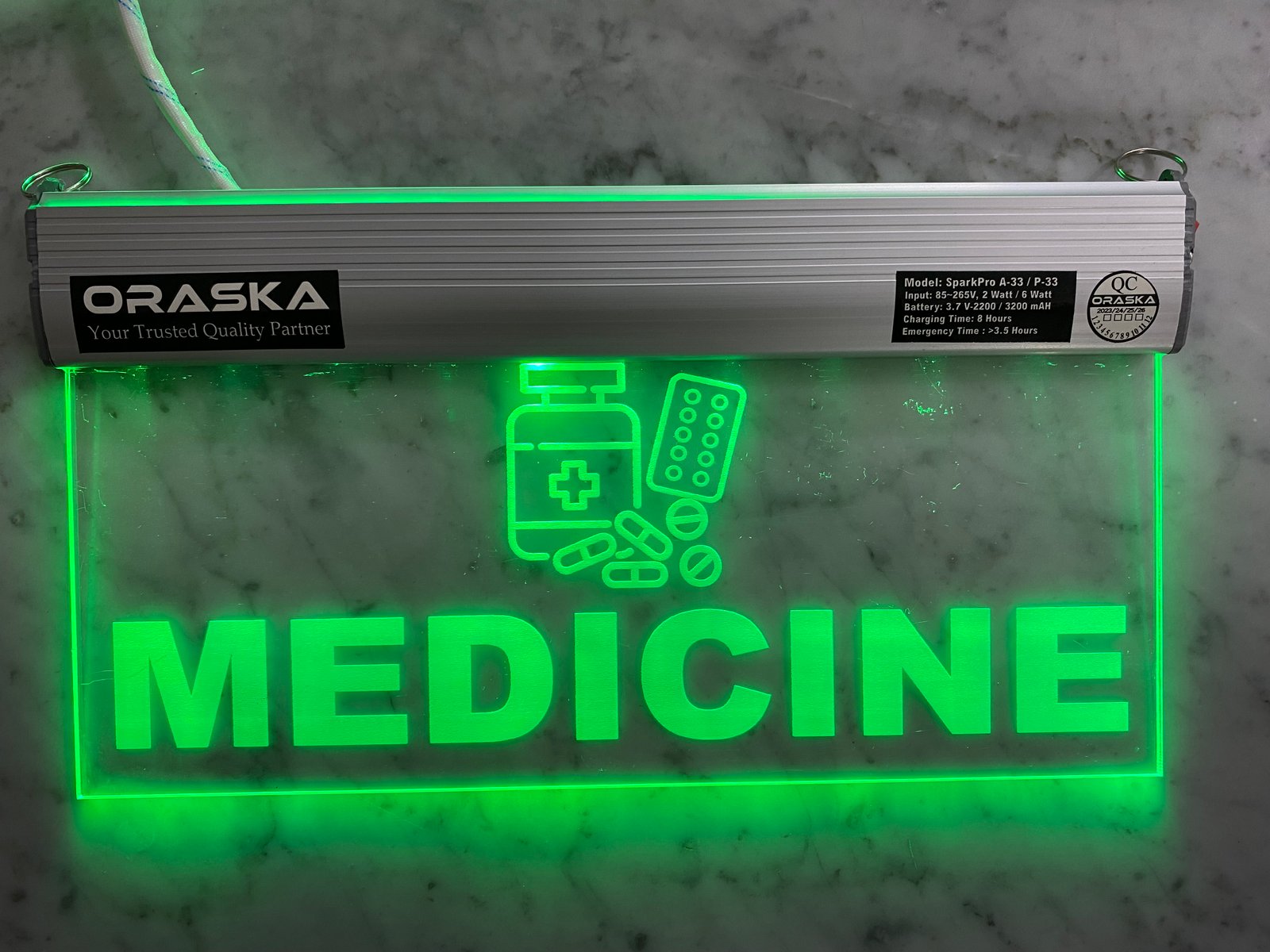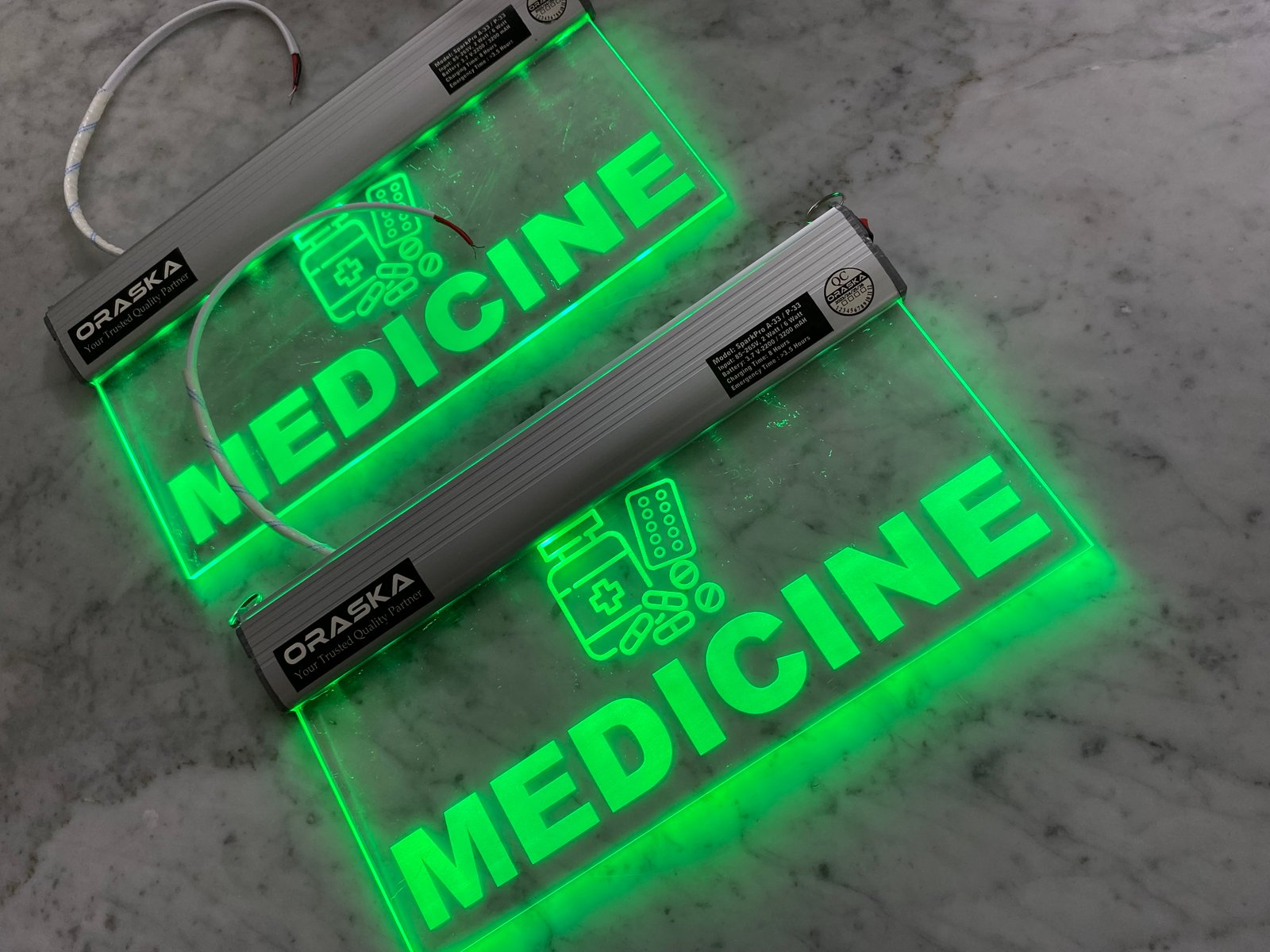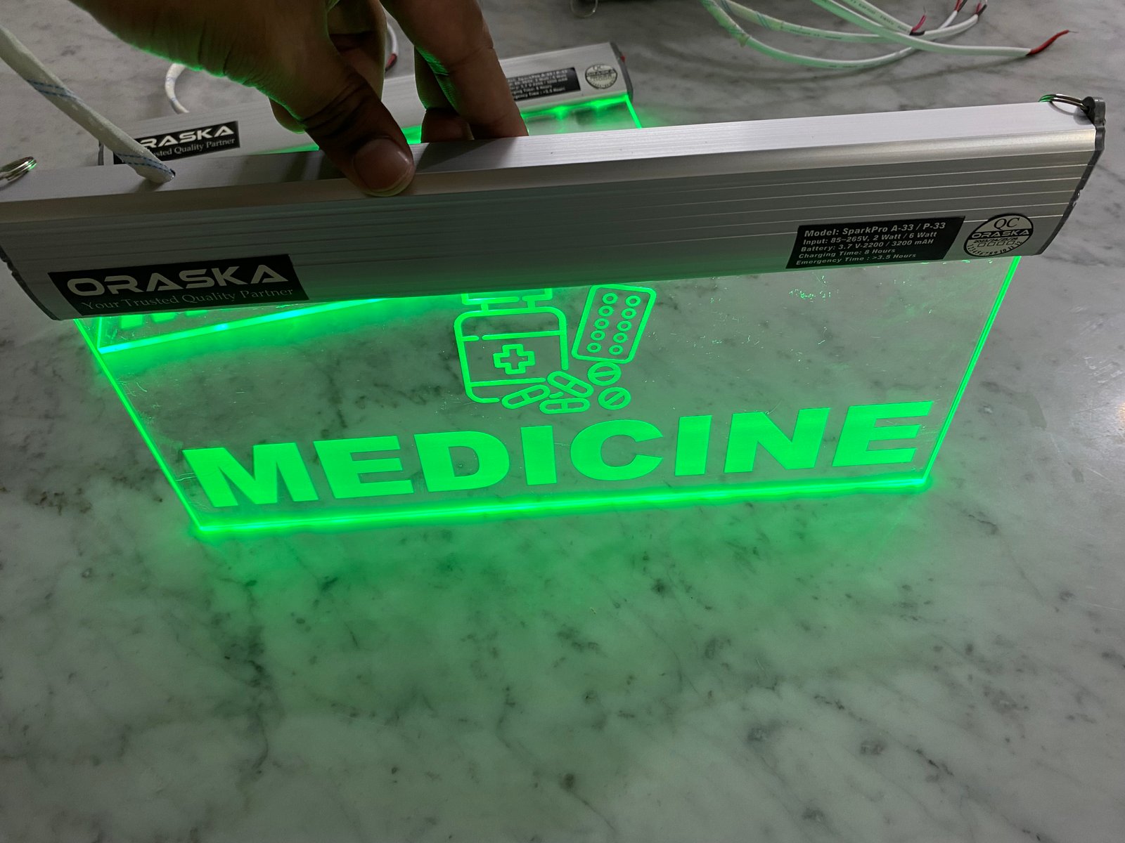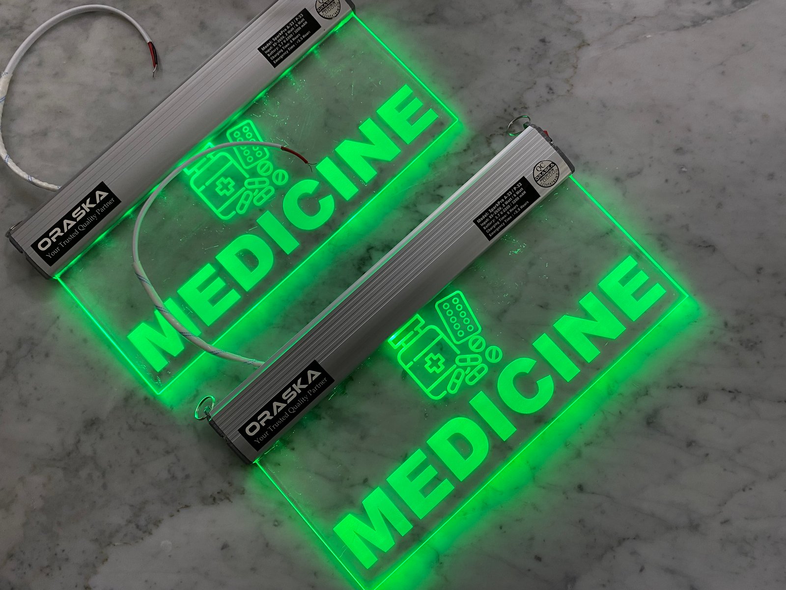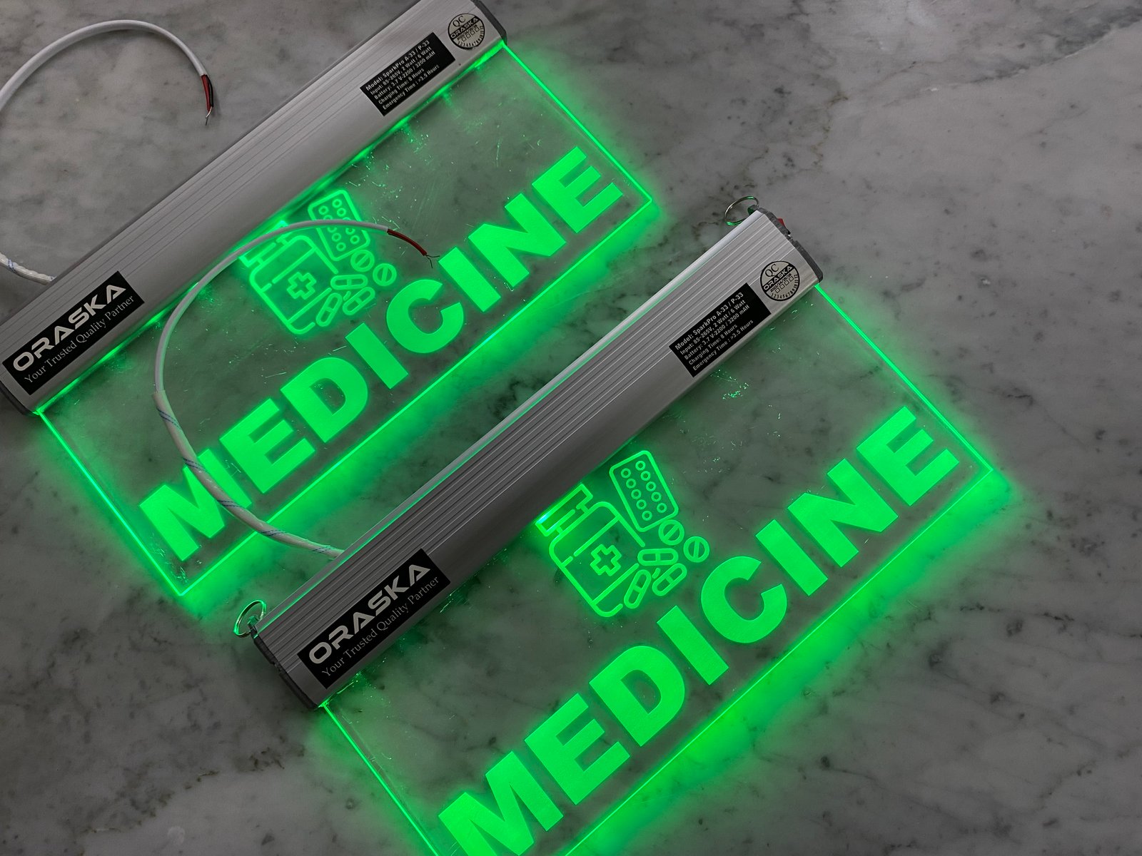 | Construction | OIPL-102 Aluminium Channel and 5mm Crystal Clear Engraved Acrylic |