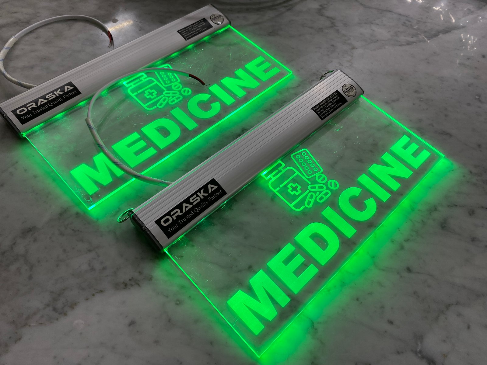 Construction: Aluminium Channel + 5mm Imported Clear Engraved Acrylic